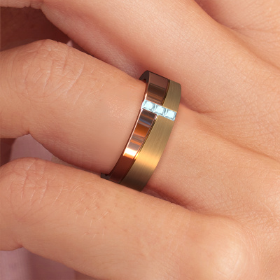 Ein einzigartiger Roségold tricolor Damen Trauring, von Ihnen entworfen und kunstvoll von unserem Goldschiede in unserem eigenen Atelier angefertigt! Ein schönes Symbol, das Ihre Liebe widerspiegelt und das Sie ein Leben lang mit sich tragen! Jeder Ring, den wir anbieten, wird kunstvoll von Hand in unserem eigenen Handwerksbetrieb geschmiedet. Das ermöglicht es uns, einen Ring für Sie zu kreieren, der ganz nach Ihrem Geschmack angepasst ist und Ihrem Stil entspricht. Dieser moderne WH0906L16A Trauring ist mit princess Aquamarins besetzt, ±6 mm breit und hat ein mattiert-glänzende Finish. Sie können in unserem Online-Tool eine Kombination aus Edelmetallen wählen. Alles ist möglich! Es ist gut, sich die Eigenschaften der verschiedenen Edelmetalle anzusehen. Gold und Silber sind zum Beispiel weichere Metalle. Die Karat werden durch die Menge der hinzugefügten zusätzlichen Metalle bestimmt. Wenn der Goldschmied nicht viel hinzufügt, sind die Karat höher und der Trauring wird weicher. Wenn er mehr Metalle hinzufügt, hat das Schmuckstück einen geringeren Wert in Karat. Ein weicheres Edelmetall kann trotzdem für Ihre moderne Trauring verwendet werden! Wenn Sie ein Edelmetall bevorzugen, das ein Leben lang halten wird, empfehlen wir Platin. Es ist das robusteste und langlebigste Metall, dass unser Goldschmied verwendet.Haben Sie noch weitere Wünschen für Ihre Trauring? Zum Beispiel ein schmälerer oder breitere Ring? Oder gerade glänzend oder mattiert? Es gibt noch unendliche andere Variationen. Sie können diese immer mit unseren Schmuckdesigners besprechen. Auch wenn Sie selbst ein Design im Kopf haben, helfen unsere Designers Ihnen gern weiter um Ihre Trauringe weiter zu zeichnen bis dieser komplett nach Ihrem Geschmack ist. Sie können uns gern kontaktieren!Nachdem Sie Ihre Bestellung aufgegeben haben, beginnen unsere Goldschmiede mit dem kreativen Prozess der Herstellung Ihre Trauringe. Wir haben keine Lager. Das ist vorteilhaft, da diese Kosten nicht an Sie weitergegeben werden. Daher sind wir in der Lage, Schmuck zu außergewöhnlich niedrigen Preisen anzubieten.Um es einfacher zu machen, bieten wir eine kostenlose 30-tägige Rücksendung.