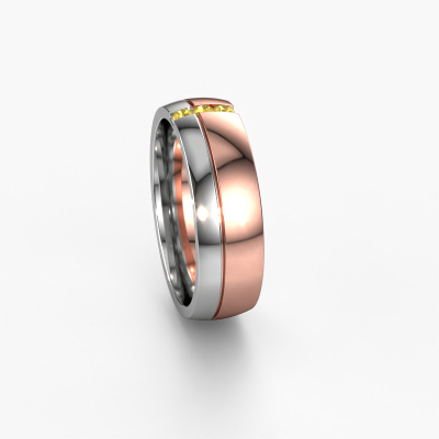 Ein einzigartiger Roségold tricolor Damen Ehering, von Ihnen entworfen und kunstvoll von unserem Goldschiede in unserem eigenen Atelier angefertigt! Ein schönes Symbol, das Ihre Liebe widerspiegelt und das Sie ein Leben lang mit sich tragen! Jeder Ring, den wir anbieten, wird kunstvoll von Hand in unserem eigenen Handwerksbetrieb geschmiedet. Das ermöglicht es uns, einen Ring für Sie zu kreieren, der ganz nach Ihrem Geschmack angepasst ist und Ihrem Stil entspricht. Dieser moderne WH0223L56A Ehering ist mit rund Gelb Saphir besetzt, ±6 mm breit und hat ein blinkendes Finish. Der Schmuckdesigner, Mitglied eines spezialisierten Teams, erstellt ein grafisches 3D-Design Ihres Ehering. Wenn es Ihnen gefällt, können Sie auch einen Dummy Ring bestellen, so dass Sie ihn anprobieren und Ihre Ehering vor der Anfertigung sehen können. Anschließend wird unser Goldschmied in unserem eigenen Studio mit großer Sorgfalt Ihren einzigartigen Ring kreieren. Eine sorgfältige Arbeit, denn sowohl das Anfertigen, als auch das Finish Ihre Ehering erfordern ein scharfes Auge. Und genau das macht unser Handwerk so besonders. Ihr einzigartiger Ehering ist das Ergebnis echter leidenschaftlicher Handwerkskunst!Sie können sich übrigens auch inspirieren lassen von diesem Eheringe und den Ringen weiter nach Ihrem Geschmack anpassen. Möchten Sie zum Beispiel lieber einen breiteren oder schmaleren Ring oder einen mattierten oder glänzenden Ring? Alles ist möglich. Auch wenn Sie selbst eine Idee haben für einzigartigen Eheringe, oder vielleicht haben Sie selbst irgendwo sonst einen schönen Set Eheringen gefunden: kein Problem! Sie können uns gern anrufen, unsere Designer besprechen gern alle Möglichkeiten mit Ihnen!Nachdem Sie Ihre Bestellung aufgegeben haben, beginnen unsere Goldschmiede mit dem kreativen Prozess der Herstellung Ihre Eheringe. Wir haben keine Lager. Das ist vorteilhaft, da diese Kosten nicht an Sie weitergegeben werden. Daher sind wir in der Lage, Schmuck zu außergewöhnlich niedrigen Preisen anzubieten.Um es einfacher zu machen, bieten wir eine kostenlose 30-tägige Rücksendung.