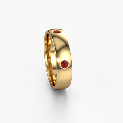 Wussten Sie, dass der Eternity Ehering nicht nur gut aussieht, sondern dass dieser Ehering auch seine eigene symbolische Bedeutung hat? Der Eternity Ehering im Gold, mit perfekt umgebenden kleineren Edelsteine, repräsentiert Ihre ewige Liebe. Da der Ring mit Edelsteinen umgeben ist, scheint er weder Anfang noch Ende zu haben. Schön, finden Sie nicht auch? Dieser reiche WH0104L25AP Damen Ehering hat eine Breite von ±5 mm und ist mit 2.5 mm Rubin besetzt. Gold steht für Liebe und deshalb liebt unser Goldschmied das Design Ihre traditionell Ehering. Wir sind ein stolzes Mitglied des Responsible Jewellery Council. Das heißt, wir verwenden nur ehrliches Gold. Darauf sind wir natürlich sehr stolz. Es ist auch möglich, eigenes Gold für das Design Ihre Ehering zu verwenden. Jedes Schmuckstück wird von Hand in unserem eigenen Atelier angefertigt, so dass wir diese Option anbieten können. Das gibt Ihnen die Möglichkeit, Ihrem Ring eine zusätzliche persönliche Note hinzuzufügen. Jeder Ring hat seine eigene Geschichte.Sie können sich gern inspirieren lassen von unseren Modellen. Sie können diesen Ehering auch gern weiter anpassen: breiter oder schmaler? Glänzend oder mattiert? Kein Problem! Auch wenn Sie selbst Ideen haben für einmaligen Eheringe, helfen unsere Schmuckdesigner Ihnen gern weiter, um Ihren Traumring zu fertigen. Sie können uns gern kontaktieren!Da wir unsere eigenen Ringe entwerfen und liefern, können wir Ihre Eheringe zu einem Preis anbieten, den Sie nirgendwo anders finden. Ein Ring wird auf Bestellung angefertigt, wodurch kein überschüssiges Material anfällt. So können wir Ihnen ein gutes Angebot zum besten Preis machen.Um es einfacher zu machen, bieten wir eine kostenlose 30-tägige Rücksendung.