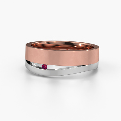 Ein einzigartiger Roségold tricolor Damen Ehering, von Ihnen entworfen und kunstvoll von unserem Goldschiede in unserem eigenen Atelier angefertigt! Ein schönes Symbol, das Ihre Liebe widerspiegelt und das Sie ein Leben lang mit sich tragen! Jeder Ring, den wir anbieten, wird kunstvoll von Hand in unserem eigenen Handwerksbetrieb geschmiedet. Das ermöglicht es uns, einen Ring für Sie zu kreieren, der ganz nach Ihrem Geschmack angepasst ist und Ihrem Stil entspricht. Dieser moderne WH6000L16AP Ehering ist mit rund Rhodolit besetzt, ±6 mm breit und hat ein blinkendes Finish. Passen Sie einfach Ihre Edelsteine und Farben mit unserem Online-Tool an. Unsere Schmuckdesigner erstellen eine 3D-Zeichnung Ihres Designs, damit Sie das Endergebnis sehen können. Unsere Goldschmiede werden anschließend Ihre Ehering nach alter Handwerkskunst von Hand anfertigen. Unser Ziel ist es, den Ehering Ihre Träume anzufertigen. Ein einzigartiger Ehering, der perfekt zu Ihrem Stil passt!Haben Sie noch weitere Wünschen für Ihre Ehering? Zum Beispiel ein schmälerer oder breitere Ring? Oder gerade glänzend oder mattiert? Es gibt noch unendliche andere Variationen. Sie können diese immer mit unseren Schmuckdesigners besprechen. Auch wenn Sie selbst ein Design im Kopf haben, helfen unsere Designers Ihnen gern weiter um Ihre Eheringe weiter zu zeichnen bis dieser komplett nach Ihrem Geschmack ist. Sie können uns gern kontaktieren!Mit unserer modernen Technik, kombiniert mit Handwerk, können wir Schmuckstücke von höchster Qualität mit größter Sorgfalt für Sie entwerfen und anpassen. Unsere Eheringe sind immer um 30 Prozent günstiger als bei anderen Juwelieren. Wir fertigen Eheringe auf Bestellung, also müssen wir keine großen Lager unterhalten.Um es einfacher zu machen, bieten wir eine kostenlose 30-tägige Rücksendung.