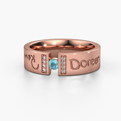 Ein einzigartiger Roségold Trauring mit Blau Topas! Was diesen WH2094L16C Damen Trauring so besonders macht ist, dass er mit einem speziellen Text graviert werden kann, der für Sie von Bedeutung ist. Ein Wort, ein kurzer Satz, oder der Teil eines Liedtextes. Welcher Text auch immer für Sie am wichtigsten ist. Erinnern Sie sich daran mit einer exquisiten Gravur in diesem moderne Trauring. Dieser eigenem Text Damen Trauring hat eine Breite von ±6 mm. Sie können in unserem Online-Tool eine Kombination aus Edelmetallen wählen. Alles ist möglich! Es ist gut, sich die Eigenschaften der verschiedenen Edelmetalle anzusehen. Gold und Silber sind zum Beispiel weichere Metalle. Die Karat werden durch die Menge der hinzugefügten zusätzlichen Metalle bestimmt. Wenn der Goldschmied nicht viel hinzufügt, sind die Karat höher und der Trauring wird weicher. Wenn er mehr Metalle hinzufügt, hat das Schmuckstück einen geringeren Wert in Karat. Ein weicheres Edelmetall kann trotzdem für Ihre moderne Trauring verwendet werden! Wenn Sie ein Edelmetall bevorzugen, das ein Leben lang halten wird, empfehlen wir Platin. Es ist das robusteste und langlebigste Metall, dass unser Goldschmied verwendet.Dieser Trauring kann auch als Inspirationsquelle dienen. Möchtest du den Ring matt oder glänzend (ohne Aufpreis) haben, oder lieber breiter oder schmaler? Alles ist möglich. Da es unzählige Variationen gibt, können wir nicht alles auf unserer Website zeigen. Hast du eine Idee für schöne Trauringe oder irgendwo anders ein schönes Set Trauringe gesehen? Kontaktiere uns gerne, unsere Designer stehen bereit, um dir zu helfen.Mit unserer modernen Technik, kombiniert mit Handwerk, können wir Schmuckstücke von höchster Qualität mit größter Sorgfalt für Sie entwerfen und anpassen. Unsere Trauringe sind immer um 30 Prozent günstiger als bei anderen Juwelieren. Wir fertigen Trauringe auf Bestellung, also müssen wir keine großen Lager unterhalten.Um es einfacher zu machen, bieten wir eine kostenlose 30-tägige Rücksendung.