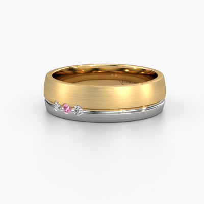 Was für eine perfekte Kombination zwei verschiedener Edelmetalle. Sie scheinen sich im moderne Design dieses Rings zu verstärken! Unser Goldschiede würde sich freuen, einen einzigartigen Ring für Sie zu kreieren, ganz nach Ihren Wünschen. Jeder Ring, den wir anbieten, wird kunstvoll von Hand in unserem eigenen Atelier angefertigt. Das macht es möglich, dass wir Ihre Modern in die Realität umsetzen und Ihnen dabei helfen, Ihren eigenen, persönlichen Ring zu kreieren, der an Ihren Stil angepasst ist. Dieser moderne Gold WH0322L25AM Damen Ehering ist mit rund Pink Saphir besetzt, ±6 mm breit und hat ein mattiert-glänzende Finish. Der Schmuckdesigner, Mitglied eines spezialisierten Teams, erstellt ein grafisches 3D-Design Ihres Ehering. Wenn es Ihnen gefällt, können Sie auch einen Dummy Ring bestellen, so dass Sie ihn anprobieren und Ihre Ehering vor der Anfertigung sehen können. Anschließend wird unser Goldschmied in unserem eigenen Studio mit großer Sorgfalt Ihren einzigartigen Ring kreieren. Eine sorgfältige Arbeit, denn sowohl das Anfertigen, als auch das Finish Ihre Ehering erfordern ein scharfes Auge. Und genau das macht unser Handwerk so besonders. Ihr einzigartiger Ehering ist das Ergebnis echter leidenschaftlicher Handwerkskunst!Sie können sich gern inspirieren lassen von unseren Modellen. Sie können diesen Ehering auch gern weiter anpassen: breiter oder schmaler? Glänzend oder mattiert? Kein Problem! Auch wenn Sie selbst Ideen haben für einmaligen Eheringe, helfen unsere Schmuckdesigner Ihnen gern weiter, um Ihren Traumring zu fertigen. Sie können uns gern kontaktieren!Mit unserer modernen Technik, kombiniert mit Handwerk, können wir Schmuckstücke von höchster Qualität mit größter Sorgfalt für Sie entwerfen und anpassen. Unsere Eheringe sind immer um 30 Prozent günstiger als bei anderen Juwelieren. Wir fertigen Eheringe auf Bestellung, also müssen wir keine großen Lager unterhalten.Um es einfacher zu machen, bieten wir eine kostenlose 30-tägige Rücksendung.