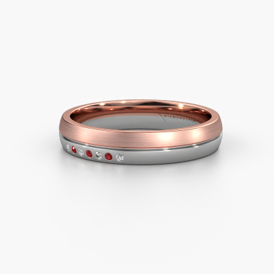 Was für eine perfekte Kombination zwei verschiedener Edelmetalle. Sie scheinen sich im trendige Design dieses Rings zu verstärken! Unser Goldschiede würde sich freuen, einen einzigartigen Ring für Sie zu kreieren, ganz nach Ihren Wünschen. Jeder Ring, den wir anbieten, wird kunstvoll von Hand in unserem eigenen Atelier angefertigt. Das macht es möglich, dass wir Ihre Trendig in die Realität umsetzen und Ihnen dabei helfen, Ihren eigenen, persönlichen Ring zu kreieren, der an Ihren Stil angepasst ist. Dieser trendige Weißgold WH0216L24APM Damen Ehering ist mit rund Rubin besetzt, ±4 mm breit und hat ein mattiert-glänzende Finish. Sie können in unserem Online-Tool eine Kombination aus Edelmetallen wählen. Alles ist möglich! Es ist gut, sich die Eigenschaften der verschiedenen Edelmetalle anzusehen. Gold und Silber sind zum Beispiel weichere Metalle. Die Karat werden durch die Menge der hinzugefügten zusätzlichen Metalle bestimmt. Wenn der Goldschmied nicht viel hinzufügt, sind die Karat höher und der Ehering wird weicher. Wenn er mehr Metalle hinzufügt, hat das Schmuckstück einen geringeren Wert in Karat. Ein weicheres Edelmetall kann trotzdem für Ihre trendige Ehering verwendet werden! Wenn Sie ein Edelmetall bevorzugen, das ein Leben lang halten wird, empfehlen wir Platin. Es ist das robusteste und langlebigste Metall, dass unser Goldschmied verwendet.Sie können sich übrigens auch inspirieren lassen von diesem Eheringe und den Ringen weiter nach Ihrem Geschmack anpassen. Möchten Sie zum Beispiel lieber einen breiteren oder schmaleren Ring oder einen mattierten oder glänzenden Ring? Alles ist möglich. Auch wenn Sie selbst eine Idee haben für einzigartigen Eheringe, oder vielleicht haben Sie selbst irgendwo sonst einen schönen Set Eheringen gefunden: kein Problem! Sie können uns gern anrufen, unsere Designer besprechen gern alle Möglichkeiten mit Ihnen!Nachdem Sie Ihre Bestellung aufgegeben haben, beginnen unsere Goldschmiede mit dem kreativen Prozess der Herstellung Ihre Eheringe. Wir haben keine Lager. Das ist vorteilhaft, da diese Kosten nicht an Sie weitergegeben werden. Daher sind wir in der Lage, Schmuck zu außergewöhnlich niedrigen Preisen anzubieten.Um es einfacher zu machen, bieten wir eine kostenlose 30-tägige Rücksendung.
