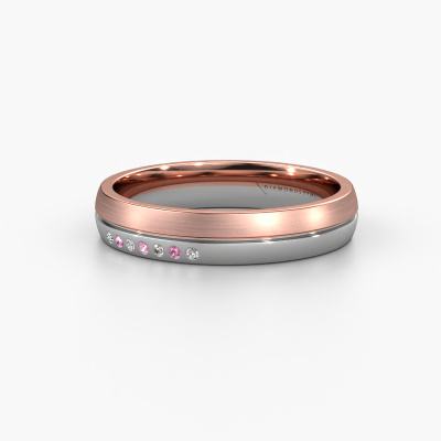 Quelle belle combinaison de deux métaux précieux, qui se renforcent si joliment dans le design tendances de cette bague ! Notre orfèvre pense qu'il est spécial de créer pour vous une alliance unique que vous avez composée vous-même. Chaque bague que nous fournissons est fabriquée à la main dans notre propre atelier. Cela permet de réaliser tous vos souhaits pour votre bague personnelle qui convient à votre style. Dans cette alliance tendances WH0216L24APM, un saphir rose ronds est serti et il à une largeur de ±4 mm et une finition mate/poli. Vous pouvez assembler cette alliance pour dames dans de différentes combinaisons de métaux précieux, celle-ci étant dotée de la combinaison d'or 14 Carat et d'or rose. Vous pouvez indiquer dans le configurateur ci-dessus quelle combinaison de métaux précieux vous convient, tout est possible ! La possibilité de regarder les propriétés des métaux précieux est un avantage particulier. Par exemple, l'or et l'argent sont deux métaux précieux plus mous. Plus l'or est pur, plus le nombre de carats est élevé et donc plus l'alliance est douce. Mais bien sûr, l'or est suffisamment dur pour être transformé en une alliance classique ! Si vous souhaitez un métal précieux qui durera toute une vie, nous vous recommandons vivement le platine. Il s’agit du métal précieux le plus résistant et le plus durable avec lequel notre orfèvre travaille.Au fait, vous pouvez être inspiré par cette bague et l'ajuster ultérieurement à votre goût. Préférez-vous un anneau plus mince ou plus large ? Préférez-vous une bague plus brillante ou mate ? Tout est possible. Aussi, si vous avez une idée de vos propres alliances extraordinaires, ou si vous avez vu un bel ensemble ailleurs qui vous plait beaucoup et que vous souhaitez personnaliser à votre goût : pas de problème ! N'hésitez pas à nous contacter. Nos designers se feront un plaisir de discuter de vos possibilités avec vous !Parce que nous ne fabriquons toutes les alliances qu'une fois les commandes passées, nous n’avons pas de frais de stocks coûteux. Tous nos bijoux sont également fabriqués selon l'artisanat traditionnel dans notre propre atelier. Cela nous permet de vous la une garantie du meilleur prix, notre prix étant 30% inférieur à celui d'autres bijoutiers. Et que vos alliances soient livrées dans la qualité des bijoutiers de confiance !Pour vous faciliter la tâche, vous pouvez facilement nous retourner tout bijou commandé dans les 30 jours suivant la livraison.