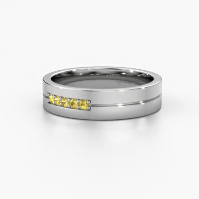 Quelle belle combinaison de deux métaux précieux, qui se renforcent si joliment dans le design modernes de cette bague ! Notre orfèvre pense qu'il est spécial de créer pour vous une alliance unique que vous avez composée vous-même. Chaque bague que nous fournissons est fabriquée à la main dans notre propre atelier. Cela permet de réaliser tous vos souhaits pour votre bague personnelle qui convient à votre style. Dans cette alliance modernes WH0211L15AP, un saphir jaune ronds est serti et il à une largeur de ±5 mm et une finition brillante. Vous pouvez assembler cette alliance pour dames dans de différentes combinaisons de métaux précieux, celle-ci étant dotée de la combinaison d'or 14 Carat et d'or blanc. Choisir une alliance n'est pas quelque chose que vous voulez faire rapidement. En fin de compte, vous voulez porter une bague qui correspond exactement à votre style et à vos souhaits. Et cela reflète aussi votre amour et votre relation l'un avec l'autre. Une bague qui doit être portée toute votre vie et qui symbolise tout ce qui vous relie. C'est pourquoi nous aimons tellement le fait de pouvoir fabriquer exactement la bague que vous avez en tête. Tous les bijoux sont fabriqués à la main dans notre propre atelier, afin que nous puissions traiter chaque détail de manière très précise. Il n'y a pas de meilleur métier !Avez-vous des préférences particulières concernant votre alliance ? Par exemple, un anneau plus petit ou plus large ? Ou peut-être un anneau brillant ou mat ? Il y a beaucoup de variations possibles. Vous pouvez toujours discuter des possibilités avec nos créateurs de bijoux. Si vous avez une certaine alliance en tête, nos designers se feront un plaisir de vous aider en dessinant les bagues de vos rêves. Assurez-vous de nous contacter !Les alliances ne sont fabriquées que sur commande. L'avantage principal est que nous ne faisons pas de stocks coûteux, ce qui se reflète donc dans le prix de nos bijoux. Toutes les alliances sont fabriquées dans notre propre atelier par nos propres orfèvres. Nous pouvons donc vous donner la garantie du meilleur prix, pour une bague d'une qualité des bijoutiers de confiance.Pour vous faciliter la tâche, vous pouvez facilement nous retourner tout bijou commandé dans les 30 jours suivant la livraison.