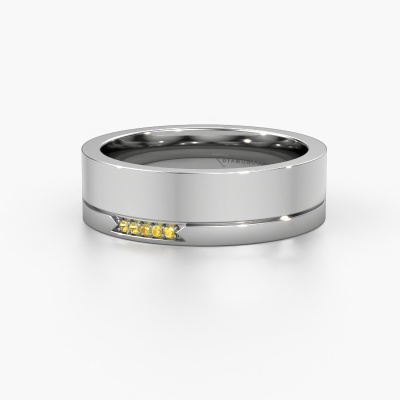 Quelle belle combinaison de deux métaux précieux, qui se renforcent si joliment dans le design modernes de cette bague ! Notre orfèvre pense qu'il est spécial de créer pour vous une bague de mariage unique que vous avez composée vous-même. Chaque bague que nous fournissons est fabriquée à la main dans notre propre atelier. Cela permet de réaliser tous vos souhaits pour votre bague personnelle qui convient à votre style. Dans cette alliance modernes WH0336L16A, un saphir jaune ronds est serti et il à une largeur de ±6 mm et une finition brillante. Vous pouvez assembler cette alliance pour dames dans de différentes combinaisons de métaux précieux, celle-ci étant dotée de la combinaison d'or 14 Carat et d'or blanc. L'or est le symbole de l'amour, et c'est la raison pour laquelle notre orfèvre aime le transformer en une bague de mariage modernes. Nous faisons partie du Responsible Jewellery Council (Conseil de Joaillerie Responsable). Cela signifie que nous travaillons avec de l'or responsable, un procédé dont nous sommes naturellement fiers. Il est également possible que votre propre or soit utilisé pour forger votre alliance. Grâce au fait que tous nos bijoux sont fabriqués à la main par notre orfèvre dans notre atelier, nous pouvons vous proposer cette option. Cela vous donne la possibilité de personnaliser encore davantage votre bague, en faire une bague avec une histoire !Au fait, vous pouvez être inspiré par cette bague et l'ajuster ultérieurement à votre goût. Préférez-vous un anneau plus mince ou plus large ? Préférez-vous une bague plus brillante ou mate ? Tout est possible. Aussi, si vous avez une idée de vos propres alliances extraordinaires, ou si vous avez vu un bel ensemble ailleurs qui vous plait beaucoup et que vous souhaitez personnaliser à votre goût : pas de problème ! N'hésitez pas à nous contacter. Nos designers se feront un plaisir de discuter de vos possibilités avec vous !Tous les bagues de mariage sont fabriquées dans notre propre atelier dès qu’une commande est reçue. Pour cette raison, nous n'avons pas besoin de stocks coûteux et nous pouvons livrer vos alliances à un prix que vous ne trouverez chez aucun autre bijoutier.Pour vous faciliter la tâche, vous pouvez facilement nous retourner tout bijou commandé dans les 30 jours suivant la livraison.