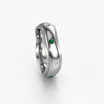 Quelle belle combinaison de deux métaux précieux, qui se renforcent si joliment dans le design modernes de cette bague ! Notre orfèvre pense qu'il est spécial de créer pour vous une alliance unique que vous avez composée vous-même. Chaque bague que nous fournissons est fabriquée à la main dans notre propre atelier. Cela permet de réaliser tous vos souhaits pour votre bague personnelle qui convient à votre style. Dans cette alliance modernes WH2051L26DP, un emeraude ronds est serti et il à une largeur de ±6 mm et une finition mate/poli. Vous pouvez assembler cette alliance pour dames dans de différentes combinaisons de métaux précieux, celle-ci étant dotée de la combinaison d'or et d'platine.