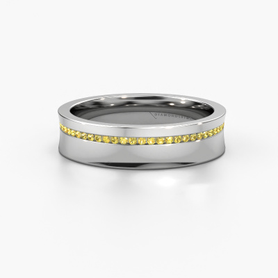 Quelle belle combinaison de deux métaux précieux, qui se renforcent si joliment dans le design modernes de cette bague ! Notre orfèvre pense qu'il est spécial de créer pour vous une alliance unique que vous avez composée vous-même. Chaque bague que nous fournissons est fabriquée à la main dans notre propre atelier. Cela permet de réaliser tous vos souhaits pour votre bague personnelle qui convient à votre style. Dans cette alliance modernes WH6090L55A, un saphir jaune ronds est serti et il à une largeur de ±5 mm et une finition brillante. Vous pouvez assembler cette alliance pour dames dans de différentes combinaisons de métaux précieux, celle-ci étant dotée de la combinaison d'or et d'platine. Notre challenge est de créer une alliance classique faite à la main et conçue par vous. Chaque conception peut être personnalisée en choisissant différents métaux précieux et pierres précieuses de notre vaste collection. Platine, or ou argent. Tout est possible. Le platine, par exemple, est un métal hypoallergénique et il convient donc aux personnes ayant la peau sensible. Le platine résiste plus également au ternissement et aux marques d'usure. L'or est disponible en différents alliages (9, 14 et 18 ct) et en 3 couleurs. Ces options vous permettent de créer une alliance unique. N'hésitez pas à nous contacter si vous avez des souhaits spécifiques et souhaitez personnaliser votre alliance.Ce alliance peut également servir de source d’inspiration. Souhaitez-vous une bague mate ou brillante (sans frais supplémentaires), ou préférez-vous qu’elle soit plus large ou plus étroite ? Tout est possible. Comme il existe d’innombrables variations, nous ne pouvons pas tout afficher sur notre site web. Avez-vous une idée pour de magnifiques alliances ou avez-vous vu ailleurs un superbe ensemble de bagues de mariage ? Contactez-nous, nos designers sont prêts à vous aider.Parce que nous ne fabriquons toutes les alliances qu'une fois les commandes passées, nous n’avons pas de frais de stocks coûteux. Tous nos bijoux sont également fabriqués selon l'artisanat traditionnel dans notre propre atelier. Cela nous permet de vous la une garantie du meilleur prix, notre prix étant 30% inférieur à celui d'autres bijoutiers. Et que vos alliances soient livrées dans la qualité des bijoutiers de confiance !Pour vous faciliter la tâche, vous pouvez facilement nous retourner tout bijou commandé dans les 30 jours suivant la livraison.