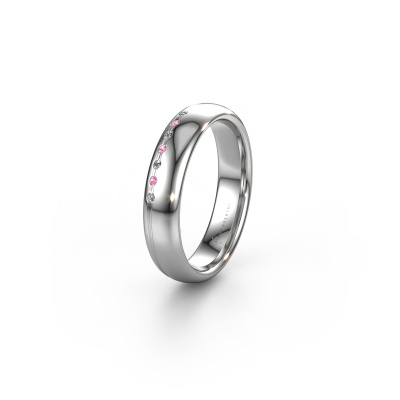 Quelle belle combinaison de deux métaux précieux, qui se renforcent si joliment dans le design modernes de cette bague ! Notre orfèvre pense qu'il est spécial de créer pour vous une bague d'amitié unique que vous avez composée vous-même. Chaque bague que nous fournissons est fabriquée à la main dans notre propre atelier. Cela permet de réaliser tous vos souhaits pour votre bague personnelle qui convient à votre style. Dans cette alliance modernes WH2144L34A, un saphir rose ronds est serti et il à une largeur de ±4 mm et une finition brillante. Vous pouvez assembler cette alliance pour dames dans de différentes combinaisons de métaux précieux, celle-ci étant dotée de la combinaison d'or et d'platine. Choisir une alliance n'est pas quelque chose que vous voulez faire rapidement. En fin de compte, vous voulez porter une bague qui correspond exactement à votre style et à vos souhaits. Et cela reflète aussi votre amour et votre relation l'un avec l'autre. Une bague qui doit être portée toute votre vie et qui symbolise tout ce qui vous relie. C'est pourquoi nous aimons tellement le fait de pouvoir fabriquer exactement la bague que vous avez en tête. Tous les bijoux sont fabriqués à la main dans notre propre atelier, afin que nous puissions traiter chaque détail de manière très précise. Il n'y a pas de meilleur métier !Laissez-vous faire inspirer par nos designs et personnalisez-les selon vos goûts : plus large ou plus petit, brillant ou mat ? Pas de problème ! Même si vous avez des idées pour vos propres alliances spéciales, nos designers de bijoux sont prêts à vous aider à concevoir la bague de vos rêves. N'hésitez pas à nous contacter !Les alliances ne sont fabriquées que sur commande. L'avantage principal est que nous ne faisons pas de stocks coûteux, ce qui se reflète donc dans le prix de nos bijoux. Toutes les alliances sont fabriquées dans notre propre atelier par nos propres orfèvres. Nous pouvons donc vous donner la garantie du meilleur prix, pour une bague d'une qualité des bijoutiers de confiance.Pour vous faciliter la tâche, vous pouvez facilement nous retourner tout bijou commandé dans les 30 jours suivant la livraison.