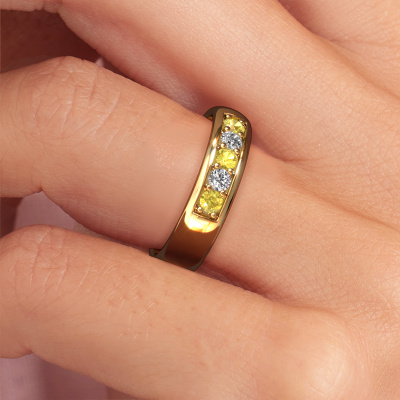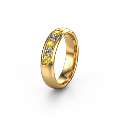 Cette alliance classiques pour dames est une magnifique alliance qui scelle votre amour. Une alliance intemporelle, avec des saphirs jaunes spécialement choisis. Dans cet exemple d'alliance WH0111L35BP forgée en or jaune de ±5 x 2 mm, un saphir jaune ronds de 2.7 mm est utilisé. Nos orfèvres utilisent les techniques les plus modernes, combinées à l'ancien artisanat des orfèvres, et fabriqueront votre alliance dans notre propre atelier. De cette façon, vous recevrez Une alliance unique faite à la main, finie dans les moindres détails et parfaitement en accord avec votre style. Choisir une alliance n'est pas quelque chose que vous voulez faire rapidement. En fin de compte, vous voulez porter une bague qui correspond exactement à votre style et à vos souhaits. Et cela reflète aussi votre amour et votre relation l'un avec l'autre. Une bague qui doit être portée toute votre vie et qui symbolise tout ce qui vous relie. C'est pourquoi nous aimons tellement le fait de pouvoir fabriquer exactement la bague que vous avez en tête. Tous les bijoux sont fabriqués à la main dans notre propre atelier, afin que nous puissions traiter chaque détail de manière très précise. Il n'y a pas de meilleur métier !Avez-vous des souhaits particuliers concernant votre alliance, mais vous avez des difficultés à trouver le design sur notre site Web ? Donc assurez-vous de contacter nos designers ! Par exemple, nous pouvons rendre l'anneau plus étroit ou plus large. Préférez-vous une finition mate ? Nous pouvons faire cela ! Les gravures sont un excellent moyen de personnaliser vos bagues et s’appliquent à la plupart des designs. Ou bien, si vous avez une idée de vos propres alliances extraordinaires, contactez-nous ! Nos designers sont prêts à relever le défi de concevoir la bague de vos rêves !En combinant nos techniques modernes avec l'artisanat ancien, nous pouvons concevoir et personnaliser les bijoux de la plus haute qualité avec le plus grand soin pour vous au meilleur prix. Nos [typetr_pluriel] sont toujours 30 % moins chers que ceux des autres bijoutiers. Nous fabriquons des alliances sur commande, ce qui nous évite d'avoir un stock important.Pour vous faciliter la tâche, vous pouvez facilement nous retourner tout bijou commandé dans les 30 jours suivant la livraison.