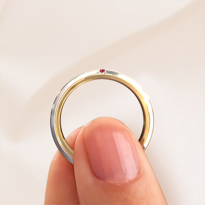 Une alliance large et 2 couleurs ! Unique, tout comme l'est votre relation ! Tout le monde est différent et par conséquent, vous ne voulez pas d'Une alliance standard. Cette alliance pour dames design WH6012LX6A a été conçue par nos créateurs de bijoux et est fabriquée à la main par notre orfèvre. Ce métier ancien pur est combiné aux techniques les plus modernes pour créer le meilleur résultat. Parce que notre orfèvre recherche la perfection dans toutes les facettes. Une alliance unique et faite à la main, faite pour sceller votre amour lors du grand jour ! Le rubis est serti dans cette alliance en or design WH6012LX6A, il à une largeur de ±6 mm et une finition mate/poli. Choisir une alliance n'est pas quelque chose que vous voulez faire rapidement. En fin de compte, vous voulez porter une bague qui correspond exactement à votre style et à vos souhaits. Et cela reflète aussi votre amour et votre relation l'un avec l'autre. Une bague qui doit être portée toute votre vie et qui symbolise tout ce qui vous relie. C'est pourquoi nous aimons tellement le fait de pouvoir fabriquer exactement la bague que vous avez en tête. Tous les bijoux sont fabriqués à la main dans notre propre atelier, afin que nous puissions traiter chaque détail de manière très précise. Il n'y a pas de meilleur métier !Avez-vous des préférences particulières concernant votre alliance ? Par exemple, un anneau plus petit ou plus large ? Ou peut-être un anneau brillant ou mat ? Il y a beaucoup de variations possibles. Vous pouvez toujours discuter des possibilités avec nos créateurs de bijoux. Si vous avez une certaine alliance en tête, nos designers se feront un plaisir de vous aider en dessinant les bagues de vos rêves. Assurez-vous de nous contacter !Tous les alliances sont fabriquées dans notre propre atelier dès qu’une commande est reçue. Pour cette raison, nous n'avons pas besoin de stocks coûteux et nous pouvons livrer vos alliances à un prix que vous ne trouverez chez aucun autre bijoutier.Pour vous faciliter la tâche, vous pouvez facilement nous retourner tout bijou commandé dans les 30 jours suivant la livraison.