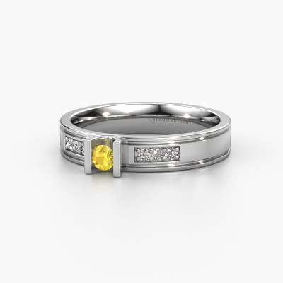 Cette alliance pour dames modernes est une superbe alliance modernes, qui symbolise votre amour unique l'uns pour l'autre ! Parfaitement adaptée à l'homme au style contemporain. Et elles peuvent être composées ensemble selon vos propres souhaits et vos propres idées. Notre orfèvre voit un beau défi dans chaque alliance et aime commencer à travailler sur Votre propre création dans notre studio. Avec beaucoup de soin et de passion, il fabrique votre union WH2108L14A à la main, en utilisant à la fois les techniques les plus innovantes et l'artisanat authentique. Et avec comme résultat cette bague unique et modernes pour femmes ! Dans cette alliance modernes WH2108L14A, le saphir jaune ronds est serti, il à une largeur de ±4 mm et une finition brillante. Vous pouvez indiquer dans le configurateur ci-dessus quelle combinaison de métaux précieux vous convient, tout est possible ! La possibilité de regarder les propriétés des métaux précieux est un avantage particulier. Par exemple, l'or et l'argent sont deux métaux précieux plus mous. Plus l'or est pur, plus le nombre de carats est élevé et donc plus l'alliance est douce. Mais bien sûr, l'or est suffisamment dur pour être transformé en une alliance classique ! Si vous souhaitez un métal précieux qui durera toute une vie, nous vous recommandons vivement le platine. Il s’agit du métal précieux le plus résistant et le plus durable avec lequel notre orfèvre travaille.Laissez-vous faire inspirer par nos designs et personnalisez-les selon vos goûts : plus large ou plus petit, brillant ou mat ? Pas de problème ! Même si vous avez des idées pour vos propres alliances spéciales, nos designers de bijoux sont prêts à vous aider à concevoir la bague de vos rêves. N'hésitez pas à nous contacter !Puisque nous concevons et livrons nos propres alliances, nous sommes en mesure de vous proposer une alliance à un prix que vous ne pourrez pas trouver ailleurs. Une alliance est fabriquée sur commande, ce qui permet d'éviter les excédents de matériel et nous permet de vous proposer une superbe offre de prix. Nous comprenons qu'acheter votre alliance en ligne soit un risque, mais nous vous assistons volontiers dans le processus de conception, en tenant compte de votre budget.Pour vous faciliter la tâche, vous pouvez facilement nous retourner tout bijou commandé dans les 30 jours suivant la livraison.