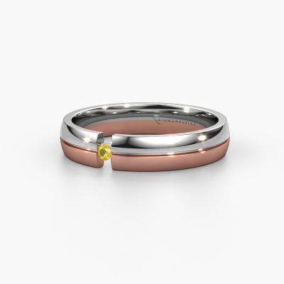 Quelle belle combinaison de deux métaux précieux, qui se renforcent si joliment dans le design modernes de cette bague ! Notre orfèvre pense qu'il est spécial de créer pour vous une alliance unique que vous avez composée vous-même. Chaque bague que nous fournissons est fabriquée à la main dans notre propre atelier. Cela permet de réaliser tous vos souhaits pour votre bague personnelle qui convient à votre style. Dans cette alliance modernes WH0254L24X, un saphir jaune ronds est serti et il à une largeur de ±4 mm et une finition brillante. Vous pouvez assembler cette alliance pour dames dans de différentes combinaisons de métaux précieux, celle-ci étant dotée de la combinaison d'or 14 Carat et d'or blanc. Choisir une alliance n'est pas quelque chose que vous voulez faire rapidement. En fin de compte, vous voulez porter une bague qui correspond exactement à votre style et à vos souhaits. Et cela reflète aussi votre amour et votre relation l'un avec l'autre. Une bague qui doit être portée toute votre vie et qui symbolise tout ce qui vous relie. C'est pourquoi nous aimons tellement le fait de pouvoir fabriquer exactement la bague que vous avez en tête. Tous les bijoux sont fabriqués à la main dans notre propre atelier, afin que nous puissions traiter chaque détail de manière très précise. Il n'y a pas de meilleur métier !Avez-vous des souhaits spécifiques ? Telle qu'une bague brillante ou mate ? Un anneau plus large ou un anneau plus petit ? Les possibilités de cette alliance sont infinies. Assurez-vous de contacter nos designers pour adapter votre bague à vos goûts personnels. Avez-vous vu un anneau quelque part, ou avez-vous des idées personnelles spéciales ? Alors n'hésitez pas à contacter nos designers et à discuter de vos idées pour votre propre ensemble de magnifiques alliances. Nous sommes prêts à relever le défi de créer la bague exactement comme vous la souhaitez !Tous les alliances sont fabriquées dans notre propre atelier dès qu’une commande est reçue. Pour cette raison, nous n'avons pas besoin de stocks coûteux et nous pouvons livrer vos alliances à un prix que vous ne trouverez chez aucun autre bijoutier.Pour vous faciliter la tâche, vous pouvez facilement nous retourner tout bijou commandé dans les 30 jours suivant la livraison.
