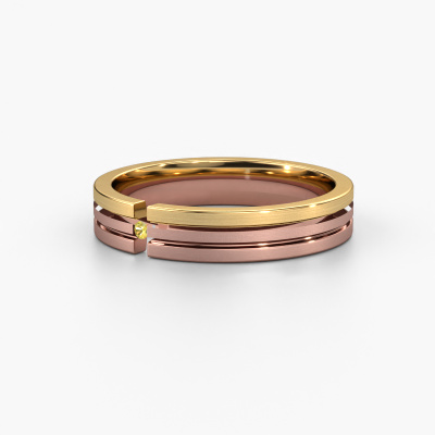 Une belle alliance forgée en or rose abordables pour dames ! La combinaison de ces trois métaux précieux symbolise votre amour unique l’un envers l’autre. Merveilleux ! Notre orfèvre travaille sur votre bague dans notre propre atelier. Une grande combinaison de savoir-faire et des techniques d’orfèvre les plus modernes nous permet de répondre à tous vos désirs jusque dans les moindres détails et donc de forger votre union tricolore modernes. Dans cette alliance WH0402L14AM tricolore, un saphir jaune ronds est serti, il à une largeur de ±4 mm et une finition mates. Choisir une alliance n'est pas quelque chose que vous voulez faire rapidement. En fin de compte, vous voulez porter une bague qui correspond exactement à votre style et à vos souhaits. Et cela reflète aussi votre amour et votre relation l'un avec l'autre. Une bague qui doit être portée toute votre vie et qui symbolise tout ce qui vous relie. C'est pourquoi nous aimons tellement le fait de pouvoir fabriquer exactement la bague que vous avez en tête. Tous les bijoux sont fabriqués à la main dans notre propre atelier, afin que nous puissions traiter chaque détail de manière très précise. Il n'y a pas de meilleur métier !Avez-vous des souhaits particuliers concernant votre alliance, mais vous avez des difficultés à trouver le design sur notre site Web ? Donc assurez-vous de contacter nos designers ! Par exemple, nous pouvons rendre l'anneau plus étroit ou plus large. Préférez-vous une finition mate ? Nous pouvons faire cela ! Les gravures sont un excellent moyen de personnaliser vos bagues et s’appliquent à la plupart des designs. Ou bien, si vous avez une idée de vos propres alliances extraordinaires, contactez-nous ! Nos designers sont prêts à relever le défi de concevoir la bague de vos rêves !En combinant nos techniques modernes avec l'artisanat ancien, nous pouvons concevoir et personnaliser les bijoux de la plus haute qualité avec le plus grand soin pour vous au meilleur prix. Nos [typetr_pluriel] sont toujours 30 % moins chers que ceux des autres bijoutiers. Nous fabriquons des alliances sur commande, ce qui nous évite d'avoir un stock important.Pour vous faciliter la tâche, vous pouvez facilement nous retourner tout bijou commandé dans les 30 jours suivant la livraison.