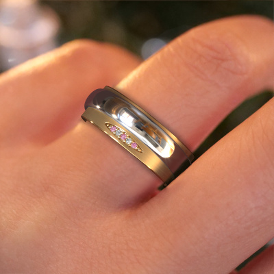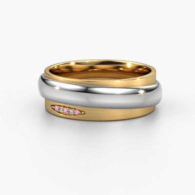 Une alliance 2 couleurs et modernes de 14 Carat ! Cette belle alliance pour dames est sertie d’un saphir rose ronds. Grâce au fait que nos orfèvres fabriqueront les alliances forgée en or jaune à la main dans notre propre atelier, les saphirs roses sont placés avec la plus grande précision, de telle sorte que la lumière sur le saphir rose rende un effet optimal. La largeur de cette alliance WH2038L modernes est de ±7 mm et sa finition est mate/poli. Une fois que vous aurez composé votre bague, notre créateur de bijoux se mettra au travail. Il fera un dessin en 3D de votre alliance. Nous pouvons également utiliser ce dessin pour créer une bague factice. Vous aurez la possibilité de commander cette bague factice pour que vous puissiez voir à l'avance comment votre bague sera. Par la suite, notre orfèvre qualifié fabriquera votre bague dans notre atelier. Nous utilisons de l'or issue du commerce équitable, de telle sorte que vous puissiez obtenir une bague dont nous sommes fiers de sa composition et de son apparence. Vous pouvez également nous remettre votre propre or. Parce que nous fabriquons votre bague à la main, nous pouvons en effet utiliser votre propre or. Notre objectif est de créer une belle alliance brillante comme vous le souhaitiez !Laissez-vous faire inspirer par nos designs et personnalisez-les selon vos goûts : plus large ou plus petit, brillant ou mat ? Pas de problème ! Même si vous avez des idées pour vos propres alliances spéciales, nos designers de bijoux sont prêts à vous aider à concevoir la bague de vos rêves. N'hésitez pas à nous contacter !Les alliances ne sont fabriquées que sur commande. L'avantage principal est que nous ne faisons pas de stocks coûteux, ce qui se reflète donc dans le prix de nos bijoux. Toutes les alliances sont fabriquées dans notre propre atelier par nos propres orfèvres. Nous pouvons donc vous donner la garantie du meilleur prix, pour une bague d'une qualité des bijoutiers de confiance.Pour vous faciliter la tâche, vous pouvez facilement nous retourner tout bijou commandé dans les 30 jours suivant la livraison.