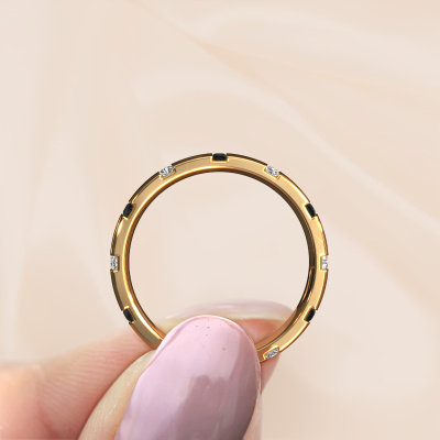 Si vous recherchez vraiment Une alliance unique en or jaune et design avec un look magnifique, cette bague de mariage est un choix absolument magnifique. Et c'est précisément parce que vous pouvez l'ajuster à votre style que vous pouvez transformer cette alliance pour femmes en une bague de bon goût et unique. Dans cette alliance design pour dames, le savoir-faire, l'amour et la passion se mêlent aux techniques d’orfèvres les plus modernes. Dans cette alliance design Juul, un diamant noir de 0.594 crt est serti, il à une largeur de ±5 mm et une finition brillante. Une fois que vous aurez composé votre bague de mariage, notre créateur de bijoux se mettra au travail. Il fera un dessin en 3D de votre alliance. Nous pouvons également utiliser ce dessin pour créer une bague factice. Vous aurez la possibilité de commander cette bague de mariage factice pour que vous puissiez voir à l'avance comment votre bague sera. Par la suite, notre orfèvre qualifié fabriquera votre bague dans notre atelier. Nous utilisons de l'or issue du commerce équitable, de telle sorte que vous puissiez obtenir une bague dont nous sommes fiers de sa composition et de son apparence. Vous pouvez également nous remettre votre propre or. Parce que nous fabriquons votre bague à la main, nous pouvons en effet utiliser votre propre or. Notre objectif est de créer une belle alliance brillante comme vous le souhaitiez !Avez-vous des préférences particulières concernant votre alliance ? Par exemple, un anneau plus petit ou plus large ? Ou peut-être un anneau brillant ou mat ? Il y a beaucoup de variations possibles. Vous pouvez toujours discuter des possibilités avec nos créateurs de bijoux. Si vous avez une certaine alliance en tête, nos designers se feront un plaisir de vous aider en dessinant les bagues de vos rêves. Assurez-vous de nous contacter !Puisque nous concevons et livrons nos propres alliances, nous sommes en mesure de vous proposer une alliance à un prix que vous ne pourrez pas trouver ailleurs. Une alliance est fabriquée sur commande, ce qui permet d'éviter les excédents de matériel et nous permet de vous proposer une superbe offre de prix. Nous comprenons qu'acheter votre alliance en ligne soit un risque, mais nous vous assistons volontiers dans le processus de conception, en tenant compte de votre budget.Pour vous faciliter la tâche, vous pouvez facilement nous retourner tout bijou commandé dans les 30 jours suivant la livraison.
