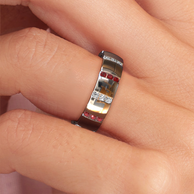 Si vous recherchez vraiment Une alliance unique en or blanc et design avec un look magnifique, cette bague de mariage est un choix absolument magnifique. Et c'est précisément parce que vous pouvez l'ajuster à votre style que vous pouvez transformer cette alliance pour femmes en une bague de bon goût et unique. Dans cette alliance design pour dames, le savoir-faire, l'amour et la passion se mêlent aux techniques d’orfèvres les plus modernes. Dans cette alliance design Juul, un rubis de 1.5 mm est serti, il à une largeur de ±5 mm et une finition brillante. Une fois que vous aurez composé votre bague de mariage, notre créateur de bijoux se mettra au travail. Il fera un dessin en 3D de votre alliance. Nous pouvons également utiliser ce dessin pour créer une bague factice. Vous aurez la possibilité de commander cette bague de mariage factice pour que vous puissiez voir à l'avance comment votre bague sera. Par la suite, notre orfèvre qualifié fabriquera votre bague dans notre atelier. Nous utilisons de l'or issue du commerce équitable, de telle sorte que vous puissiez obtenir une bague dont nous sommes fiers de sa composition et de son apparence. Vous pouvez également nous remettre votre propre or. Parce que nous fabriquons votre bague à la main, nous pouvons en effet utiliser votre propre or. Notre objectif est de créer une belle alliance brillante comme vous le souhaitiez !Avez-vous des préférences particulières concernant votre alliance ? Par exemple, un anneau plus petit ou plus large ? Ou peut-être un anneau brillant ou mat ? Il y a beaucoup de variations possibles. Vous pouvez toujours discuter des possibilités avec nos créateurs de bijoux. Si vous avez une certaine alliance en tête, nos designers se feront un plaisir de vous aider en dessinant les bagues de vos rêves. Assurez-vous de nous contacter !Puisque nous concevons et livrons nos propres alliances, nous sommes en mesure de vous proposer une alliance à un prix que vous ne pourrez pas trouver ailleurs. Une alliance est fabriquée sur commande, ce qui permet d'éviter les excédents de matériel et nous permet de vous proposer une superbe offre de prix. Nous comprenons qu'acheter votre alliance en ligne soit un risque, mais nous vous assistons volontiers dans le processus de conception, en tenant compte de votre budget.Pour vous faciliter la tâche, vous pouvez facilement nous retourner tout bijou commandé dans les 30 jours suivant la livraison.
