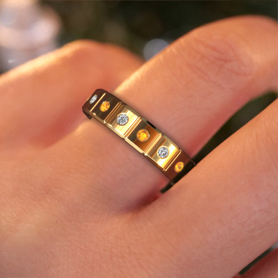 Si vous recherchez vraiment Une alliance unique en or jaune et exclusives avec un look magnifique, cette bague de mariage est un choix absolument magnifique. Et c'est précisément parce que vous pouvez l'ajuster à votre style que vous pouvez transformer cette alliance pour femmes en une bague élégants et unique. Dans cette alliance exclusives pour dames, le savoir-faire, l'amour et la passion se mêlent aux techniques d’orfèvres les plus modernes. Dans cette alliance exclusives WH2055L15DP, un citrine de 2 mm est serti, il à une largeur de ±5 mm et une finition brillante. L'or est le symbole de l'amour, et c'est la raison pour laquelle notre orfèvre aime le transformer en une bague de mariage exclusives. Nous faisons partie du Responsible Jewellery Council (Conseil de Joaillerie Responsable). Cela signifie que nous travaillons avec de l'or responsable, un procédé dont nous sommes naturellement fiers. Il est également possible que votre propre or soit utilisé pour forger votre alliance. Grâce au fait que tous nos bijoux sont fabriqués à la main par notre orfèvre dans notre atelier, nous pouvons vous proposer cette option. Cela vous donne la possibilité de personnaliser encore davantage votre bague, en faire une bague avec une histoire !Avez-vous des préférences particulières concernant votre alliance ? Par exemple, un anneau plus petit ou plus large ? Ou peut-être un anneau brillant ou mat ? Il y a beaucoup de variations possibles. Vous pouvez toujours discuter des possibilités avec nos créateurs de bijoux. Si vous avez une certaine alliance en tête, nos designers se feront un plaisir de vous aider en dessinant les bagues de vos rêves. Assurez-vous de nous contacter !Les alliances ne sont fabriquées que sur commande. L'avantage principal est que nous ne faisons pas de stocks coûteux, ce qui se reflète donc dans le prix de nos bijoux. Toutes les alliances sont fabriquées dans notre propre atelier par nos propres orfèvres. Nous pouvons donc vous donner la garantie du meilleur prix, pour une bague d'une qualité des bijoutiers de confiance.Pour vous faciliter la tâche, vous pouvez facilement nous retourner tout bijou commandé dans les 30 jours suivant la livraison.