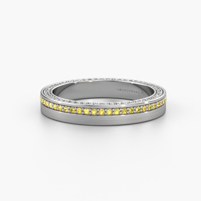L’alliance éternité en or blanc exclusives est une bague avec une belle signification symbolique. Parce qu'il n'y a pas de début ni de fin dans sa rangée de saphirs jaunes, vous montrez qu'il n'y a pas non plus de début ni de fin à votre amour. Un alliance à porter tous les jours, comme un véritable sceau de votre relation. La largeur de cette alliance carré WH2214L15BM est de ±3,5 mm et elle est sertie d’un saphir jaune de 1 mm. Une fois que vous aurez composé votre bague, notre créateur de bijoux se mettra au travail. Il fera un dessin en 3D de votre alliance. Nous pouvons également utiliser ce dessin pour créer une bague factice. Vous aurez la possibilité de commander cette bague factice pour que vous puissiez voir à l'avance comment votre bague sera. Par la suite, notre orfèvre qualifié fabriquera votre bague dans notre atelier. Nous utilisons de l'or issue du commerce équitable, de telle sorte que vous puissiez obtenir une bague dont nous sommes fiers de sa composition et de son apparence. Vous pouvez également nous remettre votre propre or. Parce que nous fabriquons votre bague à la main, nous pouvons en effet utiliser votre propre or. Notre objectif est de créer une belle alliance brillante comme vous le souhaitiez !Avez-vous des souhaits particuliers concernant votre alliance, mais vous avez des difficultés à trouver le design sur notre site Web ? Donc assurez-vous de contacter nos designers ! Par exemple, nous pouvons rendre l'anneau plus étroit ou plus large. Préférez-vous une finition mate ? Nous pouvons faire cela ! Les gravures sont un excellent moyen de personnaliser vos bagues et s’appliquent à la plupart des designs. Ou bien, si vous avez une idée de vos propres alliances extraordinaires, contactez-nous ! Nos designers sont prêts à relever le défi de concevoir la bague de vos rêves !En combinant nos techniques modernes avec l'artisanat ancien, nous pouvons concevoir et personnaliser les bijoux de la plus haute qualité avec le plus grand soin pour vous au meilleur prix. Nos [typetr_pluriel] sont toujours 30 % moins chers que ceux des autres bijoutiers. Nous fabriquons des alliances sur commande, ce qui nous évite d'avoir un stock important.Pour vous faciliter la tâche, vous pouvez facilement nous retourner tout bijou commandé dans les 30 jours suivant la livraison.
