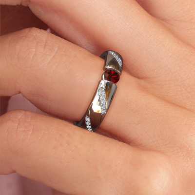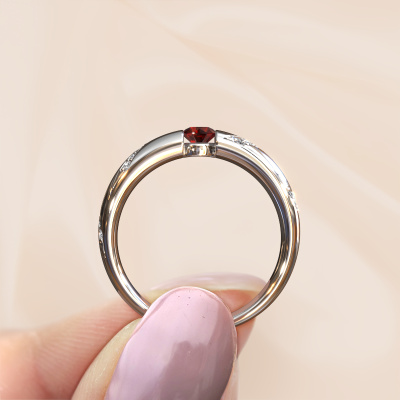 Dans cette alliance exclusives pour dames, le savoir-faire, l'amour et la passion se mêlent aux techniques d’orfèvre les plus modernes. Il faut un œil expérimenté, de la patience et une main habile pour concevoir cette alliance forgée en platine dans les moindres détails. Ce travail est exactement ce que nos orfèvres recherchent ! De cette façon, vous aurez une bague unique, adaptée à vos souhaits dans tous ses détails. Et la bague est faite à la main dans notre propre atelier. Dans cette alliance exclusives WH2102L34A, un grenat de 4 mm est serti. Le grenat à une largeur de ±5 mm et une finition brillante.