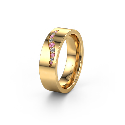 Une alliance larges et à la mode de 14 Carat ! Cette belle alliance pour dames est sertie d’un saphir rose ronds. Grâce au fait que nos orfèvres fabriqueront les alliances forgée en or jaune à la main dans notre propre atelier, les saphirs roses sont placés avec la plus grande précision, de telle sorte que la lumière sur le saphir rose rende un effet optimal. La largeur de cette alliance WH2053L16BP à la mode est de ±6 mm et sa finition est brillante. Notre challenge est de créer une alliance classique faite à la main et conçue par vous. Chaque conception peut être personnalisée en choisissant différents métaux précieux et pierres précieuses de notre vaste collection. Platine, or ou argent. Tout est possible. Le platine, par exemple, est un métal hypoallergénique et il convient donc aux personnes ayant la peau sensible. Le platine résiste plus également au ternissement et aux marques d'usure. L'or est disponible en différents alliages (9, 14 et 18 ct) et en 3 couleurs. Ces options vous permettent de créer une alliance unique. N'hésitez pas à nous contacter si vous avez des souhaits spécifiques et souhaitez personnaliser votre alliance.Au fait, vous pouvez être inspiré par cette bague et l'ajuster ultérieurement à votre goût. Préférez-vous un anneau plus mince ou plus large ? Préférez-vous une bague plus brillante ou mate ? Tout est possible. Aussi, si vous avez une idée de vos propres alliances extraordinaires, ou si vous avez vu un bel ensemble ailleurs qui vous plait beaucoup et que vous souhaitez personnaliser à votre goût : pas de problème ! N'hésitez pas à nous contacter. Nos designers se feront un plaisir de discuter de vos possibilités avec vous !Puisque nous concevons et livrons nos propres alliances, nous sommes en mesure de vous proposer une alliance à un prix que vous ne pourrez pas trouver ailleurs. Une alliance est fabriquée sur commande, ce qui permet d'éviter les excédents de matériel et nous permet de vous proposer une superbe offre de prix. Nous comprenons qu'acheter votre alliance en ligne soit un risque, mais nous vous assistons volontiers dans le processus de conception, en tenant compte de votre budget.Pour vous faciliter la tâche, vous pouvez facilement nous retourner tout bijou commandé dans les 30 jours suivant la livraison.