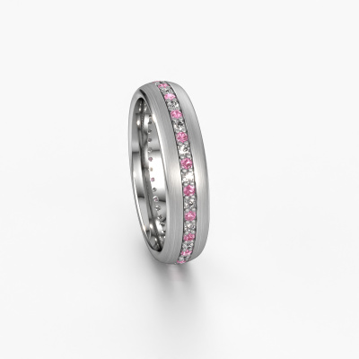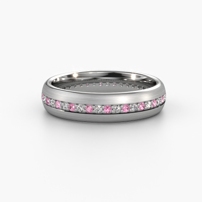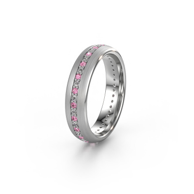 L’alliance éternité en or blanc modernes est une bague avec une belle signification symbolique. Parce qu'il n'y a pas de début ni de fin dans sa rangée de saphirs roses, vous montrez qu'il n'y a pas non plus de début ni de fin à votre amour. Un bague d'amitié à porter tous les jours, comme un véritable sceau de votre relation. La largeur de cette alliance royaux WH0103L35BM est de ±5 mm et elle est sertie d’un saphir rose de 1.3 mm. Dans notre équipe spécialisée, le créateur de bijoux crée votre alliance dans un dessin 3D. Si vous le souhaitez, vous pouvez également commander une alliance factice pour pouvoir la voir et l'ajuster à l’avance. Notre orfèvre travaillera ensuite à la main dans notre atelier pour fabriquer avec précision votre bague unique. Il effectuera un travail très soigné, car la fabrication et la finition nécessitent un oeil vif. Et voici la beauté de notre métier, car à la fin de notre travail votre alliance sera le fruit d’un véritable chef d'oeuvre accompli avec passion !Avez-vous des préférences particulières concernant votre alliance ? Par exemple, un anneau plus petit ou plus large ? Ou peut-être un anneau brillant ou mat ? Il y a beaucoup de variations possibles. Vous pouvez toujours discuter des possibilités avec nos créateurs de bijoux. Si vous avez une certaine alliance en tête, nos designers se feront un plaisir de vous aider en dessinant les bagues de vos rêves. Assurez-vous de nous contacter !Parce que nous ne fabriquons toutes les bagues d'amitié qu'une fois les commandes passées, nous n’avons pas de frais de stocks coûteux. Tous nos bijoux sont également fabriqués selon l'artisanat traditionnel dans notre propre atelier. Cela nous permet de vous la une garantie du meilleur prix, notre prix étant 30% inférieur à celui d'autres bijoutiers. Et que vos alliances soient livrées dans la qualité des bijoutiers de confiance !Pour vous faciliter la tâche, vous pouvez facilement nous retourner tout bijou commandé dans les 30 jours suivant la livraison.