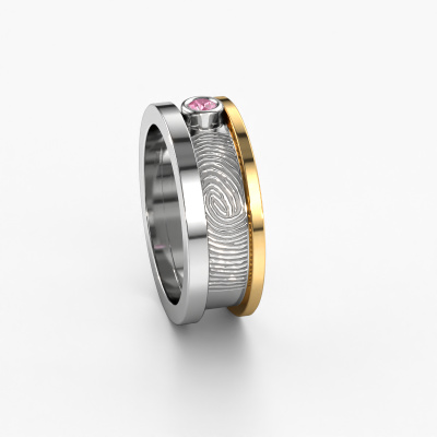 Qu'y a-t-il de plus unique qu'une empreinte digitale ? C'est la raison pour laquelle cette alliance pour dames en or blanc avec saphir rose est si spéciale. La propre empreinte de votre amoureux, gravée dans le symbole de votre amour éternel l'un pour l'autre. Que pensez-vous de la beauté de pouvoir mettre cette alliance fantaisie au doigt de votre partenaire le jour de votre mariage ? Comment ça marche ? Vous commandez d’abord l'alliance que vous souhaitez et comme vous la souhaitez. Après l'avoir commandée, envoyez-nous un email avec l'empreinte digitale. Comment vous pouvez le faire : vous pouvez le lire au bas de cette page de notre base de connaissances. La largeur de cette alliance est de ±7 mm. Une fois que vous aurez composé votre bague, notre créateur de bijoux se mettra au travail. Il fera un dessin en 3D de votre alliance. Nous pouvons également utiliser ce dessin pour créer une bague factice. Vous aurez la possibilité de commander cette bague factice pour que vous puissiez voir à l'avance comment votre bague sera. Par la suite, notre orfèvre qualifié fabriquera votre bague dans notre atelier. Nous utilisons de l'or issue du commerce équitable, de telle sorte que vous puissiez obtenir une bague dont nous sommes fiers de sa composition et de son apparence. Vous pouvez également nous remettre votre propre or. Parce que nous fabriquons votre bague à la main, nous pouvons en effet utiliser votre propre or. Notre objectif est de créer une belle alliance brillante comme vous le souhaitiez !Au fait, vous pouvez être inspiré par cette bague et l'ajuster ultérieurement à votre goût. Préférez-vous un anneau plus mince ou plus large ? Préférez-vous une bague plus brillante ou mate ? Tout est possible. Aussi, si vous avez une idée de vos propres alliances extraordinaires, ou si vous avez vu un bel ensemble ailleurs qui vous plait beaucoup et que vous souhaitez personnaliser à votre goût : pas de problème ! N'hésitez pas à nous contacter. Nos designers se feront un plaisir de discuter de vos possibilités avec vous !Parce que nous ne fabriquons toutes les alliances qu'une fois les commandes passées, nous n’avons pas de frais de stocks coûteux. Tous nos bijoux sont également fabriqués selon l'artisanat traditionnel dans notre propre atelier. Cela nous permet de vous la une garantie du meilleur prix, notre prix étant 30% inférieur à celui d'autres bijoutiers. Et que vos alliances soient livrées dans la qualité des bijoutiers de confiance !Pour vous faciliter la tâche, vous pouvez facilement nous retourner tout bijou commandé dans les 30 jours suivant la livraison.