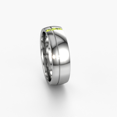 Une alliance unique forgée en or blanc bicolore pour dames, conçue par vous-même et fabriquée à la main par notre orfèvre dans notre propre atelier ! Un beau symbole qui reflète votre amour et que vous pouvez porter sur vous toute votre vie ! Chaque bague que nous fournissons est fabriquée à la main dans notre propre atelier. Cela nous permet de réaliser tous vos souhaits concernant votre bague personnelle qui convient à votre style. Dans cette alliance modernes WH0223L56A, un péridot ronds est serti, il à une largeur de ±6 mm et une finition brillante. Dans notre équipe spécialisée, le créateur de bijoux crée votre alliance dans un dessin 3D. Si vous le souhaitez, vous pouvez également commander une alliance factice pour pouvoir la voir et l'ajuster à l’avance. Notre orfèvre travaillera ensuite à la main dans notre atelier pour fabriquer avec précision votre bague unique. Il effectuera un travail très soigné, car la fabrication et la finition nécessitent un oeil vif. Et voici la beauté de notre métier, car à la fin de notre travail votre alliance sera le fruit d’un véritable chef d'oeuvre accompli avec passion !Au fait, vous pouvez être inspiré par cette bague et l'ajuster ultérieurement à votre goût. Préférez-vous un anneau plus mince ou plus large ? Préférez-vous une bague plus brillante ou mate ? Tout est possible. Aussi, si vous avez une idée de vos propres alliances extraordinaires, ou si vous avez vu un bel ensemble ailleurs qui vous plait beaucoup et que vous souhaitez personnaliser à votre goût : pas de problème ! N'hésitez pas à nous contacter. Nos designers se feront un plaisir de discuter de vos possibilités avec vous !Parce que nous ne fabriquons toutes les alliances qu'une fois les commandes passées, nous n’avons pas de frais de stocks coûteux. Tous nos bijoux sont également fabriqués selon l'artisanat traditionnel dans notre propre atelier. Cela nous permet de vous la une garantie du meilleur prix, notre prix étant 30% inférieur à celui d'autres bijoutiers. Et que vos alliances soient livrées dans la qualité des bijoutiers de confiance !Pour vous faciliter la tâche, vous pouvez facilement nous retourner tout bijou commandé dans les 30 jours suivant la livraison.