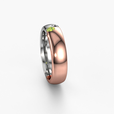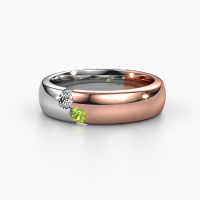 Une alliance unique forgée en or rose bicolore pour dames, conçue par vous-même et fabriquée à la main par notre orfèvre dans notre propre atelier ! Un beau symbole qui reflète votre amour et que vous pouvez porter sur vous toute votre vie ! Chaque bague que nous fournissons est fabriquée à la main dans notre propre atelier. Cela nous permet de réaliser tous vos souhaits concernant votre bague personnelle qui convient à votre style. Dans cette alliance modernes WH1003L26C, un péridot ronds est serti, il à une largeur de ±6 mm et une finition brillante. Dans notre équipe spécialisée, le créateur de bijoux crée votre alliance dans un dessin 3D. Si vous le souhaitez, vous pouvez également commander une alliance factice pour pouvoir la voir et l'ajuster à l’avance. Notre orfèvre travaillera ensuite à la main dans notre atelier pour fabriquer avec précision votre bague unique. Il effectuera un travail très soigné, car la fabrication et la finition nécessitent un oeil vif. Et voici la beauté de notre métier, car à la fin de notre travail votre alliance sera le fruit d’un véritable chef d'oeuvre accompli avec passion !Laissez-vous faire inspirer par nos designs et personnalisez-les selon vos goûts : plus large ou plus petit, brillant ou mat ? Pas de problème ! Même si vous avez des idées pour vos propres alliances spéciales, nos designers de bijoux sont prêts à vous aider à concevoir la bague de vos rêves. N'hésitez pas à nous contacter !Les alliances ne sont fabriquées que sur commande. L'avantage principal est que nous ne faisons pas de stocks coûteux, ce qui se reflète donc dans le prix de nos bijoux. Toutes les alliances sont fabriquées dans notre propre atelier par nos propres orfèvres. Nous pouvons donc vous donner la garantie du meilleur prix, pour une bague d'une qualité des bijoutiers de confiance.Pour vous faciliter la tâche, vous pouvez facilement nous retourner tout bijou commandé dans les 30 jours suivant la livraison.