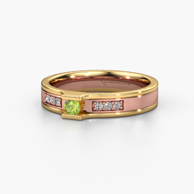 Une alliance unique forgée en or rose bicolore pour dames, conçue par vous-même et fabriquée à la main par notre orfèvre dans notre propre atelier ! Un beau symbole qui reflète votre amour et que vous pouvez porter sur vous toute votre vie ! Chaque bague que nous fournissons est fabriquée à la main dans notre propre atelier. Cela nous permet de réaliser tous vos souhaits concernant votre bague personnelle qui convient à votre style. Dans cette alliance modernes WH2110L14A, un péridot ronds est serti, il à une largeur de ±4 mm et une finition brillante. Dans notre équipe spécialisée, le créateur de bijoux crée votre alliance dans un dessin 3D. Si vous le souhaitez, vous pouvez également commander une alliance factice pour pouvoir la voir et l'ajuster à l’avance. Notre orfèvre travaillera ensuite à la main dans notre atelier pour fabriquer avec précision votre bague unique. Il effectuera un travail très soigné, car la fabrication et la finition nécessitent un oeil vif. Et voici la beauté de notre métier, car à la fin de notre travail votre alliance sera le fruit d’un véritable chef d'oeuvre accompli avec passion !Avez-vous des souhaits spécifiques ? Telle qu'une bague brillante ou mate ? Un anneau plus large ou un anneau plus petit ? Les possibilités de cette alliance sont infinies. Assurez-vous de contacter nos designers pour adapter votre bague à vos goûts personnels. Avez-vous vu un anneau quelque part, ou avez-vous des idées personnelles spéciales ? Alors n'hésitez pas à contacter nos designers et à discuter de vos idées pour votre propre ensemble de magnifiques alliances. Nous sommes prêts à relever le défi de créer la bague exactement comme vous la souhaitez !En combinant nos techniques modernes avec l'artisanat ancien, nous pouvons concevoir et personnaliser les bijoux de la plus haute qualité avec le plus grand soin pour vous au meilleur prix. Nos [typetr_pluriel] sont toujours 30 % moins chers que ceux des autres bijoutiers. Nous fabriquons des alliances sur commande, ce qui nous évite d'avoir un stock important.Pour vous faciliter la tâche, vous pouvez facilement nous retourner tout bijou commandé dans les 30 jours suivant la livraison.