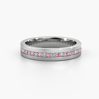 Saviez-vous que la bague éternité Ladies n'a pas que du charisme, mais est aussi symboliquement une magnifique alliance ? L’alliance éternité, avec les saphirs roses sertis les uns à côté des autres, représente votre amour éternel. Puisque les pierres sont serties tout autour de l’anneau, il n'y a pas de début ni de fin. Un symbole merveilleux, non ? La largeur de cette alliance royaux WH0203L14BPM en platine est de ±4 mm et elle est sertie d’un saphir rose de 1.3 mm. Choisir une alliance n'est pas quelque chose que vous voulez faire rapidement. En fin de compte, vous voulez porter une bague qui correspond exactement à votre style et à vos souhaits. Et cela reflète aussi votre amour et votre relation l'un avec l'autre. Une bague qui doit être portée toute votre vie et qui symbolise tout ce qui vous relie. C'est pourquoi nous aimons tellement le fait de pouvoir fabriquer exactement la bague que vous avez en tête. Tous les bijoux sont fabriqués à la main dans notre propre atelier, afin que nous puissions traiter chaque détail de manière très précise. Il n'y a pas de meilleur métier !Avez-vous des souhaits spécifiques ? Telle qu'une bague brillante ou mate ? Un anneau plus large ou un anneau plus petit ? Les possibilités de cette alliance sont infinies. Assurez-vous de contacter nos designers pour adapter votre bague à vos goûts personnels. Avez-vous vu un anneau quelque part, ou avez-vous des idées personnelles spéciales ? Alors n'hésitez pas à contacter nos designers et à discuter de vos idées pour votre propre ensemble de magnifiques alliances. Nous sommes prêts à relever le défi de créer la bague exactement comme vous la souhaitez !Les alliances ne sont fabriquées que sur commande. L'avantage principal est que nous ne faisons pas de stocks coûteux, ce qui se reflète donc dans le prix de nos bijoux. Toutes les alliances sont fabriquées dans notre propre atelier par nos propres orfèvres. Nous pouvons donc vous donner la garantie du meilleur prix, pour une bague d'une qualité des bijoutiers de confiance.Pour vous faciliter la tâche, vous pouvez facilement nous retourner tout bijou commandé dans les 30 jours suivant la livraison.