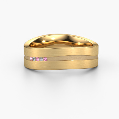 Une alliance large et lourdes ! Unique, tout comme l'est votre relation ! Tout le monde est différent et par conséquent, vous ne voulez pas d'Une alliance standard. Cette alliance pour dames à la mode WH2019P a été conçue par nos créateurs de bijoux et est fabriquée à la main par notre orfèvre. Ce métier ancien pur est combiné aux techniques les plus modernes pour créer le meilleur résultat. Parce que notre orfèvre recherche la perfection dans toutes les facettes. Une alliance unique et faite à la main, faite pour sceller votre amour lors du grand jour ! Le saphir rose est serti dans cette alliance en or à la mode WH2019P, il à une largeur de ±6 mm et une finition mates.