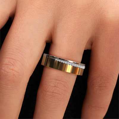 Dans cette alliance design pour dames, le savoir-faire, l'amour et la passion se mêlent aux techniques d’orfèvre les plus modernes. Il faut un œil expérimenté, de la patience et une main habile pour concevoir cette alliance forgée en or jaune dans les moindres détails. Ce travail est exactement ce que nos orfèvres recherchent ! De cette façon, vous aurez une bague unique, adaptée à vos souhaits dans tous ses détails. Et la bague est faite à la main dans notre propre atelier. Dans cette alliance design WH1002L15DP, un zircone de 0.8 mm est serti. Le zircone à une largeur de ±6 mm et une finition brillante. Vous pouvez indiquer dans le configurateur ci-dessus quelle combinaison de métaux précieux vous convient, tout est possible ! La possibilité de regarder les propriétés des métaux précieux est un avantage particulier. Par exemple, l'or et l'argent sont deux métaux précieux plus mous. Plus l'or est pur, plus le nombre de carats est élevé et donc plus l'alliance est douce. Mais bien sûr, l'or est suffisamment dur pour être transformé en une alliance classique ! Si vous souhaitez un métal précieux qui durera toute une vie, nous vous recommandons vivement le platine. Il s’agit du métal précieux le plus résistant et le plus durable avec lequel notre orfèvre travaille.Avez-vous des préférences particulières concernant votre alliance ? Par exemple, un anneau plus petit ou plus large ? Ou peut-être un anneau brillant ou mat ? Il y a beaucoup de variations possibles. Vous pouvez toujours discuter des possibilités avec nos créateurs de bijoux. Si vous avez une certaine alliance en tête, nos designers se feront un plaisir de vous aider en dessinant les bagues de vos rêves. Assurez-vous de nous contacter !Les alliances ne sont fabriquées que sur commande. L'avantage principal est que nous ne faisons pas de stocks coûteux, ce qui se reflète donc dans le prix de nos bijoux. Toutes les alliances sont fabriquées dans notre propre atelier par nos propres orfèvres. Nous pouvons donc vous donner la garantie du meilleur prix, pour une bague d'une qualité des bijoutiers de confiance.Pour vous faciliter la tâche, vous pouvez facilement nous retourner tout bijou commandé dans les 30 jours suivant la livraison.