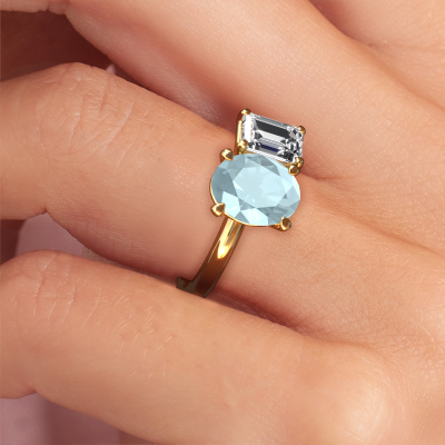 Cette bague de fiançailles porte le nom Toi et Moi OVL-EME. Cette bague de fiançailles forgée en or 14 Carat est sertie d’un aigue-marine de 9x7 mm. Qu'est-ce qui rend votre relation unique ? Qu'est-ce que qui fait que vous souhaitiez qu’elle devienne votre femmes ? Cet anneau unique que vous avez ensemble peut être reflété dans une bague unique. Une bague de fiançailles 2 pierres unique qui est seulement créée pour elle. Et c'est la raison pour laquelle cette bague de fiançailles lui ira parfaitement. Chaque détail de cette bague de fiançailles ci-dessous forgée en or jaune sertie d’un aigue-marine est composée, travaillée et polie à la main par notre orfèvre dans notre atelier. Le résultat final est une magnifique bague de fiançailles, unique et parfaitement forgée dans les moindres détails ! Ce résultat est ce que nos orfèvres recherchent à tout prix ! Ce bijou est faite spécialement pour vous, avec une attention particulière portée aux détails et au design.Nos orfèvres ne fabriqueront votre bague de fiançailles qu'une fois que vous l'aurez commandée. Nous ne faisons pas de stock. L'avantage de cela est que nous n'avons pas à inclure les frais de stockage dans nos prix, et nous pouvons donc vous offrir des bijoux à un prix très bas.Notre équipe ajoute quotidiennement de nouveaux modèles à notre collection en ligne. Nos designers et orfèvres travaillent ensemble pour créer le meilleur design. Nous nous efforçons d'offrir une collection diversifiée de bijoux. Peut-être avez-vous déjà en tête un bijou en particulier ? Un bijou que vous avez trouvé quelque part. Veuillez nous contacter pour une consultation gratuite. Nous vous ferons une offre, basée sur un rapport qualité / prix juste, qui vous déconcertera.Pour vous faciliter la tâche, vous pouvez facilement nous retourner tout bijou commandé dans les 30 jours suivant la livraison.
