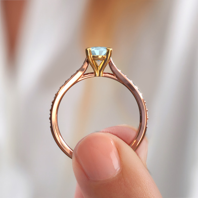 Nous avons donné le nom Mignon ovl 2 à la bague de fiançailles mentionnée ci-dessous. Ce type de bague de fiançailles est appelée une bague de fiançailles solitaire car elle ne contient qu’une seule pierre précieuse. La bague de fiançailles est forgée en or 14 Carat et comporte un aigue-marine ovale d’une de 7x5 mm. L’avantage de notre outil de configuration est que vous pouvez choisir les éléments de votre propres bijou pour créer vous-même votre propre bijou. Cette bague de fiançailles solitaire est faite à partir d’une combinaison de métal précieux d’or et d’or jaune, mais vous pouvez également choisir un or d’une autre couleur. Chaque bijou est faite avec passion et amour par l'un de nos maîtres orfèvres. La bague de fiançailles solitaire est une large bague de fiançailles. C'est précisément grâce au fait que le sertissage de chaton soit ouvert que l'incidence de la lumière crée un effet magnifique sur la pierre précieuse. Puisque la pierre précieuse choisie est sertie en élévation sur la bague de fiançailles, cette bague de fiançailles élégants attirera tous les regards une loyautés finie. Nous fabriquerons tous les détails de cette bague de fiançailles solitaire avec le plus grand soin, afin que vous puissiez bientôt couronner votre demande en mariage avec une bague unique, en particulier pour l'amour de votre vie ! Saviez-vous que nous offrons la garantie du meilleur prix pour votre bague de fiançailles? Cela est possible car tous nos bijoux sont fabriqués à la main dans notre propre atelier. Nous n'avons pas de frais de stocks qui sont coûteux, et nous fabriquons votre bague uniquement une fois que vous l'avez commandée. Grâce au fait que nous ayons toute la production du bijou en main, nous pouvons vous informer sur toutes les caractéristiques de cette bague de fiançailles. C’est précisément parce que l’achat d’une bague en ligne est une expérience excitante que nous comprenons qu’il est plus confortable pour vous de connaître toutes les caractéristiques de votre bague.Notre équipe ajoute quotidiennement de nouveaux modèles à notre collection en ligne. Nos designers et orfèvres travaillent ensemble pour créer le meilleur design. Nous nous efforçons d'offrir une collection diversifiée de bijoux. Peut-être avez-vous déjà en tête un bijou en particulier ? Un bijou que vous avez trouvé quelque part. Veuillez nous contacter pour une consultation gratuite. Nous vous ferons une offre, basée sur un rapport qualité / prix juste, qui vous déconcertera.Pour vous faciliter la tâche, vous pouvez facilement nous retourner tout bijou commandé dans les 30 jours suivant la livraison.