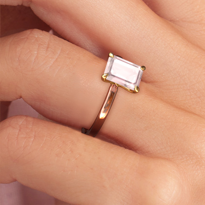 Nous avons donné le nom Crystal EME 1 à la bague de fiançailles mentionnée ci-dessous. Ce type de bague de fiançailles est appelée une bague de fiançailles solitaire car elle ne contient qu’une seule pierre précieuse. La bague de fiançailles est forgée en or 14 Carat et comporte un champagne morganite taille émeraude d’une de 8x6 mm. L’avantage de notre outil de configuration est que vous pouvez choisir les éléments de votre propres bijou pour créer vous-même votre propre bijou. Cette bague de fiançailles solitaire est faite à partir d’une combinaison de métal précieux d’or et d’or jaune, mais vous pouvez également choisir un or d’une autre couleur. Chaque bijou est faite avec passion et amour par l'un de nos maîtres orfèvres. La bague de fiançailles solitaire est une large bague de fiançailles. C'est précisément grâce au fait que le sertissage de chaton soit ouvert que l'incidence de la lumière crée un effet magnifique sur la pierre précieuse. Puisque la pierre précieuse choisie est sertie en élévation sur la bague de fiançailles, cette bague de fiançailles classiques attirera tous les regards une loyautés finie. Nous fabriquerons tous les détails de cette bague de fiançailles solitaire avec le plus grand soin, afin que vous puissiez bientôt couronner votre demande en mariage avec une bague unique, en particulier pour l'amour de votre vie ! Saviez-vous que nous offrons la garantie du meilleur prix pour votre bague de fiançailles? Cela est possible car tous nos bijoux sont fabriqués à la main dans notre propre atelier. Nous n'avons pas de frais de stocks qui sont coûteux, et nous fabriquons votre bague uniquement une fois que vous l'avez commandée. Grâce au fait que nous ayons toute la production du bijou en main, nous pouvons vous informer sur toutes les caractéristiques de cette bague de fiançailles. C’est précisément parce que l’achat d’une bague en ligne est une expérience excitante que nous comprenons qu’il est plus confortable pour vous de connaître toutes les caractéristiques de votre bague.Notre équipe de designers talentueux et passionnés ajoute chaque jour de nouveaux modèles bague de fiançailles à notre collection en ligne. Notre objectif est de pouvoir vous offrir une grande variété de bijoux. N'hésitez pas à demander un devis si vous avez des souhaits spécifiques pour votre bague de fiançailles. Nous garantissons de vous faire une offre que vous ne pourrez pas refuser.Pour vous faciliter la tâche, vous pouvez facilement nous retourner tout bijou commandé dans les 30 jours suivant la livraison.