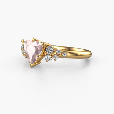 Le nom de cette bague de fiançailles est Royce TRI. Elle est forgée en or 14 Carat et est sertie d'un champagne morganite de 7 mm. Comment décririez-vous le style de l'amour de votre vie ? Est-ce qu'elle aime quelque chose qui est juste un peu