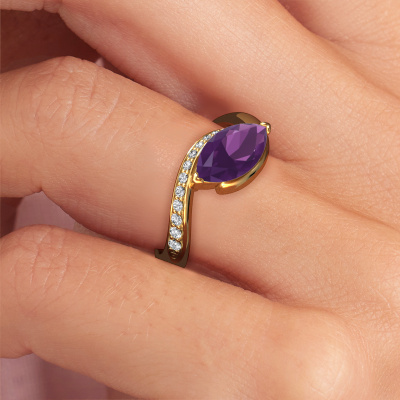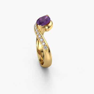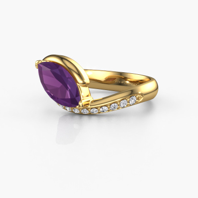 Le nom de cette bague de fiançailles est Aida MRQ side. Elle est forgée en or 14 Carat et est sertie d'un améthyste de 11x5.5 mm. Êtes-vous à la recherche d'une bague de fiançailles forgée en or jaune design que vous pourrez adapter à votre goût ? Un améthyste est utilisé dans cette bague de fiançailles design. Celui-ci a été soigneusement sélectionné pour créer le plus bel effet. Notre orfèvre fabrique votre bague de fiançailles dans notre propre atelier et sertit le améthyste dans l'anneau avec une précision extrême. Donc, la bague est travaillée et polie jusqu'à ce que le résultat soit visible : la bague de fiançailles parfaite pour l'amour de votre vie ! Ce bijou est faite avec passion et amour par l'un de nos maîtres orfèvres.Vous avez peut-être remarqué que nos prix sont en moyenne inférieurs de 30% à ceux d'un autre bijoutier. Et ce alors que la qualité de nos bijoux est même plus élevée dans la plupart des cas ! En effet, nos orfèvres fabriquent votre bague de fiançailles directement dans notre propre atelier. Cela signifie que nous n'avons pas à inclure des frais de stocks coûteux et que nous pouvons travailler n'importe quel détail directement sur votre bague de fiançailles.Notre équipe ajoute quotidiennement de nouveaux modèles à notre collection en ligne. Nos designers et orfèvres travaillent ensemble pour créer le meilleur design. Nous nous efforçons d'offrir une collection diversifiée de bijoux. Peut-être avez-vous déjà en tête un bijou en particulier ? Un bijou que vous avez trouvé quelque part. Veuillez nous contacter pour une consultation gratuite. Nous vous ferons une offre, basée sur un rapport qualité / prix juste, qui vous déconcertera.Pour vous faciliter la tâche, vous pouvez facilement nous retourner tout bijou commandé dans les 30 jours suivant la livraison.