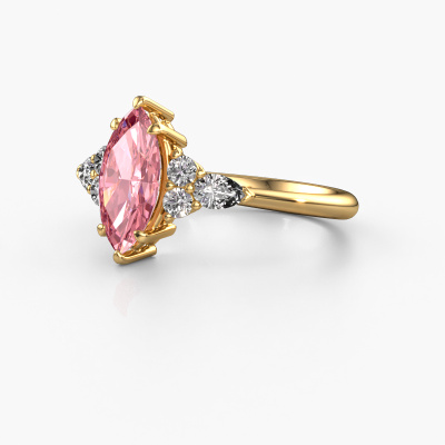 Cette bague de fiançailles porte le nom Melani MRQ. Cette bague de fiançailles forgée en or 14 Carat est sertie d’un diamant synthétique roze de 11x5.5 mm. Qu'est-ce qui rend votre relation unique ? Qu'est-ce que qui fait que vous souhaitiez qu’elle devienne votre femmes ? Cet anneau unique que vous avez ensemble peut être reflété dans une bague unique. Une bague de fiançailles entourage unique qui est seulement créée pour elle. Et c'est la raison pour laquelle cette bague de fiançailles lui ira parfaitement. Chaque détail de cette bague de fiançailles ci-dessous forgée en or jaune sertie d’un diamant synthétique roze est composée, travaillée et polie à la main par notre orfèvre dans notre atelier. Le résultat final est une magnifique bague de fiançailles, unique et parfaitement forgée dans les moindres détails ! Ce résultat est ce que nos orfèvres recherchent à tout prix ! Ce bijou est faite spécialement pour vous, avec une attention particulière portée aux détails et au design.Saviez-vous que nous offrons la garantie du meilleur prix pour votre bague de fiançailles? Cela est possible car tous nos bijoux sont fabriqués à la main dans notre propre atelier. Nous n'avons pas de frais de stocks qui sont coûteux, et nous fabriquons votre bague uniquement une fois que vous l'avez commandée. Grâce au fait que nous ayons toute la production du bijou en main, nous pouvons vous informer sur toutes les caractéristiques de cette bague de fiançailles. C’est précisément parce que l’achat d’une bague en ligne est une expérience excitante que nous comprenons qu’il est plus confortable pour vous de connaître toutes les caractéristiques de votre bague.Avez-vous déjà des bague de fiançailles spécifiques en tête ? Une bague de fiançailles que vous avez vu quelque part. N'hésitez pas à nous faire part de vos souhaits et nous transformerons votre design en des bague de fiançailles uniques. Vous êtes en mesure de suivre l'évolution de la conception de vos bague de fiançailles car nous utilisons des dessins en 3D. Cela vous donnera un aperçu réaliste de votre design. Nous vous enverrons volontiers une offre sans engagement basée sur un rapport qualité / prix juste. Elle va vous étonner.Pour vous faciliter la tâche, vous pouvez facilement nous retourner tout bijou commandé dans les 30 jours suivant la livraison.