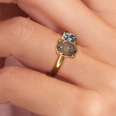 Le nom de cette bague de fiançailles est Toi et Moi OVL-OVL. Elle est forgée en or 14 Carat et est sertie d'un diamant brun de 1.50 crt. Comment décririez-vous le style de l'amour de votre vie ? Est-ce qu'elle aime quelque chose qui est juste un peu plus différent que d'habitude ? Cette bague de fiançailles forgée en or jaune avec sublimes est une superbe bague que vous pouvez personnaliser à votre guise. Un diamant brun est utilisé dans cette bague de fiançailles modernes. Ces diamants bruns ont été sélectionnés avec soin, car nous pensons que sur votre bague de fiançailles, seule les plus belle pierre précieuses peuvent y briller, n'est-ce pas ? Ce bijou est fabriquée par une équipe d'orfèvres et de designers motivés. Cela permettra à cette pièce unique d'attirer tous les regards.Nos orfèvres ne fabriqueront votre bague de fiançailles qu'une fois que vous l'aurez commandée. Nous ne faisons pas de stock. L'avantage de cela est que nous n'avons pas à inclure les frais de stockage dans nos prix, et nous pouvons donc vous offrir des bijoux à un prix très bas. Notre équipe ajoute quotidiennement de nouveaux modèles à notre collection en ligne. Nos designers et orfèvres travaillent ensemble pour créer le meilleur design. Nous nous efforçons d'offrir une collection diversifiée de bijoux. Peut-être avez-vous déjà en tête un bijou en particulier ? Un bijou que vous avez trouvé quelque part. Veuillez nous contacter pour une consultation gratuite. Nous vous ferons une offre, basée sur un rapport qualité / prix juste, qui vous déconcertera.Pour vous faciliter la tâche, vous pouvez facilement nous retourner tout bijou commandé dans les 30 jours suivant la livraison.