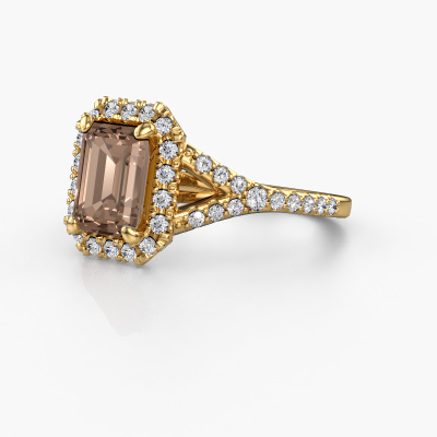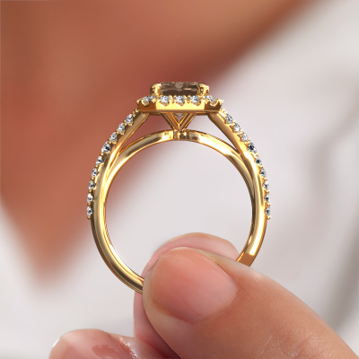 La bague de fiançailles mentionnée ci-dessus a été nommée Kimber EME. Ce type de bague de fiançailles est appelé une bague de fiançailles solitaire pavé car elle ne comporte qu’une seule pierre centrale et les tiges de la bague de fiançailles sont également pleins. La bague de fiançailles est faite dans une combinaison d'or 14 Carat et d’or jaune et a un diamant brun taille émeraude d’une de 1.75 crt, et des diamants synthétiques sont sertis sur les épaules de l’anneau. Chaque bijou est fabriquée par une équipe d'orfèvres et de designers motivés. Cela permettra à cette pièce unique d'attirer tous les regards. Cette bague de fiançailles solitaire pavé forgée en or jaune exclusives a un beau diamants bruns taille émeraude comme pierre centrale, avec plus de diamants bruns sertis dans la bague pour accentuer encore plus la présence de la pierre centrale. Le sertissage à griffes autour du diamant brun étant ouvert, le diamant brun capte la lumière de tous les côtés et brille de manière optimale. Ci-dessus, vous pouvez voir comment notre orfèvre travaille la bague de fiançailles avec une extrême précision dans les moindres détails, de telle sorte que le diamant brun élevé puisse attirer tous les regards. Quelle belle bague de fiançailles à offrir lors de votre demande en mariage à l'amour de votre vie, à votre centre rayonnant ! En combinant les dernières techniques modernes, associées à une fabrication ancienne, nous sommes en mesure de fabriquer nos bagues de fiançailles dans notre propre studio. Chaque bijou est fabriqué sur commande. Ceci est avantageux car nous sommes en mesure de vous proposer un prix que vous ne trouverez nulle part ailleurs.Notre équipe ajoute quotidiennement de nouveaux modèles à notre collection en ligne. Nos designers et orfèvres travaillent ensemble pour créer le meilleur design. Nous nous efforçons d'offrir une collection diversifiée de bijoux. Peut-être avez-vous déjà en tête un bijou en particulier ? Un bijou que vous avez trouvé quelque part. Veuillez nous contacter pour une consultation gratuite. Nous vous ferons une offre, basée sur un rapport qualité / prix juste, qui vous déconcertera.Pour vous faciliter la tâche, vous pouvez facilement nous retourner tout bijou commandé dans les 30 jours suivant la livraison.