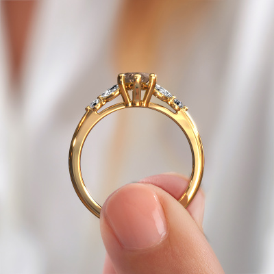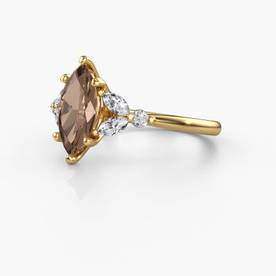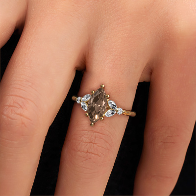 Nous avons donné le nom Megan MRQ à la bague de fiançailles mentionnée ci-dessous. Ce type de bague de fiançailles est appelé une bague de fiançailles solitaire pavé car elle ne comporte qu’une seule pierre centrale et les tiges de la bague de fiançailles ont également une finition pleine. Cette bague de fiançailles est forgée en or 14 Carat et comporte un diamant brun marquise de 1.25 crt. Des diamants synthétiques sont sertis dans les épaules latérales de l’anneau. Chaque bijou est faite avec passion et amour par l'un de nos maîtres orfèvres.. Cette bague de fiançailles solitaire pavé forgée en or jaune fantaisie a un beau diamant brun marquise en guise de pierre centrale, avec plus de diamants synthétiques dans l’anneau pour accentuer encore plus l’effet de la pierre centrale. Le sertissage à griffes autour du diamant brun étant ouvert, le diamant brun capte la lumière de tous les côtés et brille de manière optimale. Ci-dessus, vous pouvez voir comment notre orfèvre a travaillé la bague de fiançailles dans les moindres détails. de telle sorte que le diamant brun élevé puisse véritablement attirer tous les regards. Quelle belle bague de fiançailles à offre lors de votre demande en mariage à l'amour de votre vie, à votre centre rayonnant ! [bestp1v_long]Avez-vous déjà des bague de fiançailles spécifiques en tête ? Une bague de fiançailles que vous avez vu quelque part. N'hésitez pas à nous faire part de vos souhaits et nous transformerons votre design en des bague de fiançailles uniques. Vous êtes en mesure de suivre l'évolution de la conception de vos bague de fiançailles car nous utilisons des dessins en 3D. Cela vous donnera un aperçu réaliste de votre design. Nous vous enverrons volontiers une offre sans engagement basée sur un rapport qualité / prix juste. Elle va vous étonner.Pour vous faciliter la tâche, vous pouvez facilement nous retourner tout bijou commandé dans les 30 jours suivant la livraison.