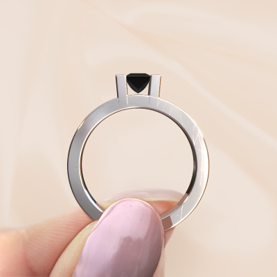 La bague de fiançailles mentionnée ci-dessus a été nommée Desire. Ce type de bague de fiançailles est appelé une bague de fiançailles solitaire pavé car elle ne comporte qu’une seule pierre centrale et les tiges de la bague de fiançailles sont également pleins. La bague de fiançailles est faite dans une combinaison d'or 14 Carat et d’or blanc et a un diamant noir princesse d’une de 0.48 crt, et des diamants sont sertis sur les épaules de l’anneau. Chaque bijou est fabriquées spécialement pour vous par nos maîtres orfèvres dans notre propre atelier. Cette bague de fiançailles solitaire pavé forgée en or blanc modernes a un beau diamants noirs princesse comme pierre centrale, avec plus de diamants noirs sertis dans la bague pour accentuer encore plus la présence de la pierre centrale. Le sertissage à griffes autour du diamant noir étant ouvert, le diamant noir capte la lumière de tous les côtés et brille de manière optimale. Ci-dessus, vous pouvez voir comment notre orfèvre travaille la bague de fiançailles avec une extrême précision dans les moindres détails, de telle sorte que le diamant noir élevé puisse attirer tous les regards. Quelle belle bague de fiançailles à offrir lors de votre demande en mariage à l'amour de votre vie, à votre centre rayonnant ! En combinant les dernières techniques modernes, associées à une fabrication ancienne, nous sommes en mesure de fabriquer nos bagues de fiançailles dans notre propre studio. Chaque bijou est fabriqué sur commande. Ceci est avantageux car nous sommes en mesure de vous proposer un prix que vous ne trouverez nulle part ailleurs.Avez-vous déjà des bague de fiançailles spécifiques en tête ? Une bague de fiançailles que vous avez vu quelque part. N'hésitez pas à nous faire part de vos souhaits et nous transformerons votre design en des bague de fiançailles uniques. Vous êtes en mesure de suivre l'évolution de la conception de vos bague de fiançailles car nous utilisons des dessins en 3D. Cela vous donnera un aperçu réaliste de votre design. Nous vous enverrons volontiers une offre sans engagement basée sur un rapport qualité / prix juste. Elle va vous étonner.Pour vous faciliter la tâche, vous pouvez facilement nous retourner tout bijou commandé dans les 30 jours suivant la livraison.
