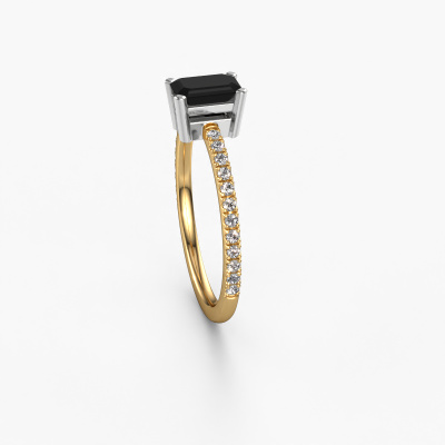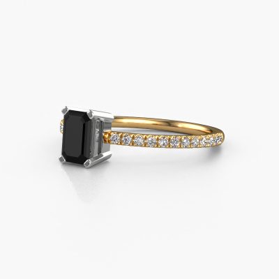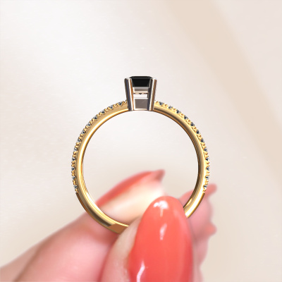 Nous avons donné le nom Denita 2 EME à la bague de fiançailles mentionnée ci-dessous. Ce type de bague de fiançailles est appelé une bague de fiançailles solitaire pavé car elle ne comporte qu’une seule pierre centrale et les tiges de la bague de fiançailles ont également une finition pleine. Cette bague de fiançailles est forgée en or 14 Carat et comporte un diamant noir taille émeraude de 0.84 crt. Des diamants sont sertis dans les épaules latérales de l’anneau. Chaque bijou est fabriquée spécialement pour vous par nos maîtres orfèvres dans notre propre atelier.. Cette bague de fiançailles solitaire pavé forgée en or jaune traditionnelles a un beau diamant noir taille émeraude en guise de pierre centrale, avec plus de diamants dans l’anneau pour accentuer encore plus l’effet de la pierre centrale. Le sertissage à griffes autour du diamant noir étant ouvert, le diamant noir capte la lumière de tous les côtés et brille de manière optimale. Ci-dessus, vous pouvez voir comment notre orfèvre a travaillé la bague de fiançailles dans les moindres détails. de telle sorte que le diamant noir élevé puisse véritablement attirer tous les regards. Quelle belle bague de fiançailles à offre lors de votre demande en mariage à l'amour de votre vie, à votre centre rayonnant ! Vous avez peut-être remarqué que nos prix sont en moyenne inférieurs de 30% à ceux d'un autre bijoutier. Et ce alors que la qualité de nos bijoux est même plus élevée dans la plupart des cas ! En effet, nos orfèvres fabriquent votre bague de fiançailles directement dans notre propre atelier. Cela signifie que nous n'avons pas à inclure des frais de stocks coûteux et que nous pouvons travailler n'importe quel détail directement sur votre bague de fiançailles.Notre équipe ajoute quotidiennement de nouveaux modèles à notre collection en ligne. Nos designers et orfèvres travaillent ensemble pour créer le meilleur design. Nous nous efforçons d'offrir une collection diversifiée de bijoux. Peut-être avez-vous déjà en tête un bijou en particulier ? Un bijou que vous avez trouvé quelque part. Veuillez nous contacter pour une consultation gratuite. Nous vous ferons une offre, basée sur un rapport qualité / prix juste, qui vous déconcertera.Pour vous faciliter la tâche, vous pouvez facilement nous retourner tout bijou commandé dans les 30 jours suivant la livraison.