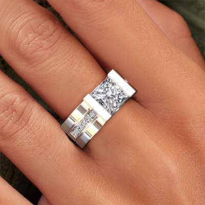 La bague de fiançailles mentionnée ci-dessus a été nommée Desire. Ce type de bague de fiançailles est appelé une bague de fiançailles solitaire pavé car elle ne comporte qu’une seule pierre centrale et les tiges de la bague de fiançailles sont également pleins. La bague de fiançailles est faite dans une combinaison d'or 14 Carat et d’or blanc et a un diamant princesse d’une de 2.00 crt, et des diamants sont sertis sur les épaules de l’anneau. Chaque bijou est fabriquées spécialement pour vous par nos maîtres orfèvres dans notre propre atelier. Cette bague de fiançailles solitaire pavé forgée en or blanc modernes a un beau diamants princesse comme pierre centrale, avec plus de diamants sertis dans la bague pour accentuer encore plus la présence de la pierre centrale. Le sertissage à griffes autour du diamant étant ouvert, le diamant capte la lumière de tous les côtés et brille de manière optimale. Ci-dessus, vous pouvez voir comment notre orfèvre travaille la bague de fiançailles avec une extrême précision dans les moindres détails, de telle sorte que le diamant élevé puisse attirer tous les regards. Quelle belle bague de fiançailles à offrir lors de votre demande en mariage à l'amour de votre vie, à votre centre rayonnant ! En combinant les dernières techniques modernes, associées à une fabrication ancienne, nous sommes en mesure de fabriquer nos bagues de fiançailles dans notre propre studio. Chaque bijou est fabriqué sur commande. Ceci est avantageux car nous sommes en mesure de vous proposer un prix que vous ne trouverez nulle part ailleurs.Avez-vous déjà des bague de fiançailles spécifiques en tête ? Une bague de fiançailles que vous avez vu quelque part. N'hésitez pas à nous faire part de vos souhaits et nous transformerons votre design en des bague de fiançailles uniques. Vous êtes en mesure de suivre l'évolution de la conception de vos bague de fiançailles car nous utilisons des dessins en 3D. Cela vous donnera un aperçu réaliste de votre design. Nous vous enverrons volontiers une offre sans engagement basée sur un rapport qualité / prix juste. Elle va vous étonner.Pour vous faciliter la tâche, vous pouvez facilement nous retourner tout bijou commandé dans les 30 jours suivant la livraison.