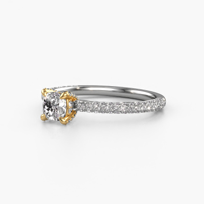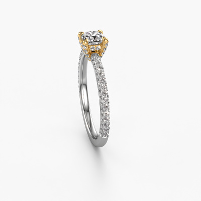 La bague de fiançailles mentionnée ci-dessus a été nommée Saskia 2 cus. Ce type de bague de fiançailles est appelé une bague de fiançailles solitaire pavé car elle ne comporte qu’une seule pierre centrale et les tiges de la bague de fiançailles sont également pleins. La bague de fiançailles est faite dans une combinaison d'or 14 Carat et d’or jaune et a un diamant coussin d’une de 0.50 crt, et des diamants synthétiques sont sertis sur les épaules de l’anneau. Chaque bijou est faite spécialement pour vous, avec une attention particulière portée aux détails et au design. Cette bague de fiançailles solitaire pavé forgée en or blanc contemporains a un beau diamants coussin comme pierre centrale, avec plus de diamants sertis dans la bague pour accentuer encore plus la présence de la pierre centrale. Le sertissage à griffes autour du diamant étant ouvert, le diamant capte la lumière de tous les côtés et brille de manière optimale. Ci-dessus, vous pouvez voir comment notre orfèvre travaille la bague de fiançailles avec une extrême précision dans les moindres détails, de telle sorte que le diamant élevé puisse attirer tous les regards. Quelle belle bague de fiançailles à offrir lors de votre demande en mariage à l'amour de votre vie, à votre centre rayonnant ! Vous avez peut-être remarqué que nos prix sont en moyenne inférieurs de 30% à ceux d'un autre bijoutier. Et ce alors que la qualité de nos bijoux est même plus élevée dans la plupart des cas ! En effet, nos orfèvres fabriquent votre bague de fiançailles directement dans notre propre atelier. Cela signifie que nous n'avons pas à inclure des frais de stocks coûteux et que nous pouvons travailler n'importe quel détail directement sur votre bague de fiançailles.Notre équipe de designers talentueux et passionnés ajoute chaque jour de nouveaux modèles bague de fiançailles à notre collection en ligne. Notre objectif est de pouvoir vous offrir une grande variété de bijoux. N'hésitez pas à demander un devis si vous avez des souhaits spécifiques pour votre bague de fiançailles. Nous garantissons de vous faire une offre que vous ne pourrez pas refuser.Pour vous faciliter la tâche, vous pouvez facilement nous retourner tout bijou commandé dans les 30 jours suivant la livraison.