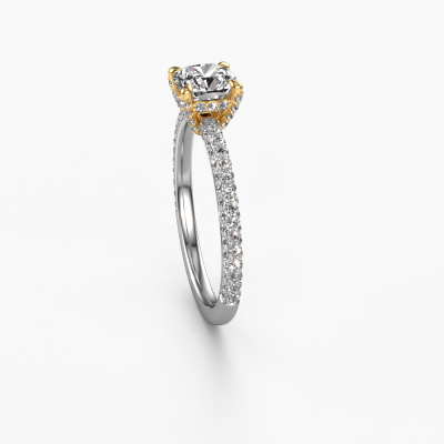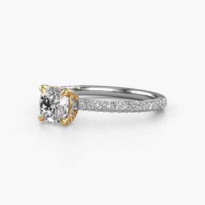 La bague de fiançailles mentionnée ci-dessus a été nommée Saskia 2 cus. Ce type de bague de fiançailles est appelé une bague de fiançailles solitaire pavé car elle ne comporte qu’une seule pierre centrale et les tiges de la bague de fiançailles sont également pleins. La bague de fiançailles est faite dans une combinaison d'or 14 Carat et d’or jaune et a un diamant coussin d’une de 1.00 crt, et des diamants synthétiques sont sertis sur les épaules de l’anneau. Chaque bijou est faite spécialement pour vous, avec une attention particulière portée aux détails et au design. Cette bague de fiançailles solitaire pavé forgée en or blanc contemporains a un beau diamants coussin comme pierre centrale, avec plus de diamants sertis dans la bague pour accentuer encore plus la présence de la pierre centrale. Le sertissage à griffes autour du diamant étant ouvert, le diamant capte la lumière de tous les côtés et brille de manière optimale. Ci-dessus, vous pouvez voir comment notre orfèvre travaille la bague de fiançailles avec une extrême précision dans les moindres détails, de telle sorte que le diamant élevé puisse attirer tous les regards. Quelle belle bague de fiançailles à offrir lors de votre demande en mariage à l'amour de votre vie, à votre centre rayonnant ! Vous avez peut-être remarqué que nos prix sont en moyenne inférieurs de 30% à ceux d'un autre bijoutier. Et ce alors que la qualité de nos bijoux est même plus élevée dans la plupart des cas ! En effet, nos orfèvres fabriquent votre bague de fiançailles directement dans notre propre atelier. Cela signifie que nous n'avons pas à inclure des frais de stocks coûteux et que nous pouvons travailler n'importe quel détail directement sur votre bague de fiançailles.Notre équipe de designers talentueux et passionnés ajoute chaque jour de nouveaux modèles bague de fiançailles à notre collection en ligne. Notre objectif est de pouvoir vous offrir une grande variété de bijoux. N'hésitez pas à demander un devis si vous avez des souhaits spécifiques pour votre bague de fiançailles. Nous garantissons de vous faire une offre que vous ne pourrez pas refuser.Pour vous faciliter la tâche, vous pouvez facilement nous retourner tout bijou commandé dans les 30 jours suivant la livraison.
