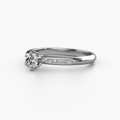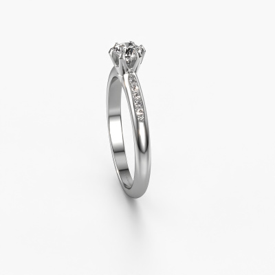 Nous avons donné le nom Tiffy 2 à la bague de fiançailles mentionnée ci-dessous. Ce type de bague de fiançailles est appelé une bague de fiançailles solitaire pavé car elle ne comporte qu’une seule pierre centrale et les tiges de la bague de fiançailles ont également une finition pleine. Cette bague de fiançailles est forgée en or 14 Carat et comporte un diamant ronds de 0.30 crt. Des diamants sont sertis dans les épaules latérales de l’anneau. Chaque bijou est faite pour briller sur votre doigt, chaque bijou est fabriqué à la main par nos orfèvres.. Cette bague de fiançailles solitaire pavé forgée en or blanc traditionnelles a un beau diamant ronds en guise de pierre centrale, avec plus de diamants dans l’anneau pour accentuer encore plus l’effet de la pierre centrale. Le sertissage à griffes autour du diamant étant ouvert, le diamant capte la lumière de tous les côtés et brille de manière optimale. Ci-dessus, vous pouvez voir comment notre orfèvre a travaillé la bague de fiançailles dans les moindres détails. de telle sorte que le diamant élevé puisse véritablement attirer tous les regards. Quelle belle bague de fiançailles à offre lors de votre demande en mariage à l'amour de votre vie, à votre centre rayonnant ! Qu'y a-t-il dorénavant de plus beau qu'une bague de fiançailles traditionnelles conçue par vous-même et fabriquée à la main par nous. Vous pouvez personnaliser chaque modèle avec les différents métaux précieux et pierres précieuses. De cette façon, vous pourrez créer une bague de fiançailles unique. Cette bague peut être mise en place de plusieurs façons. Bien sûr, vous pouvez toujours nous contacter et nous serons heureux de vous aider à composer votre bague de fiançailles traditionnelles Tiffy 2. Vous aimez le design, mais vous souhaitez tout de même quelque chose qui vous convienne plus, ou bien vous souhaitez une pierre précieuse dans les bijoux que vous ne pouvez pas choisir sur notre site, contactez-nous et nous vous aiderons.Notre équipe de designers talentueux et passionnés ajoute chaque jour de nouveaux modèles bague de fiançailles à notre collection en ligne. Notre objectif est de pouvoir vous offrir une grande variété de bijoux. N'hésitez pas à demander un devis si vous avez des souhaits spécifiques pour votre bague de fiançailles. Nous garantissons de vous faire une offre que vous ne pourrez pas refuser.Pour vous faciliter la tâche, vous pouvez facilement nous retourner tout bijou commandé dans les 30 jours suivant la livraison.