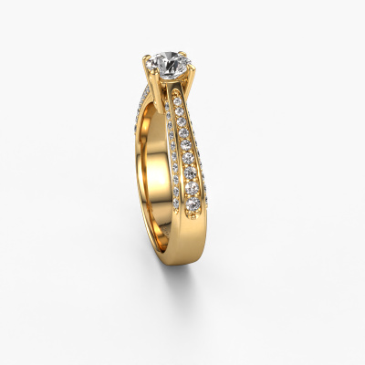 Nous avons donné le nom Ruby rnd à la bague de fiançailles mentionnée ci-dessous. Ce type de bague de fiançailles est appelé une bague de fiançailles solitaire pavé car elle ne comporte qu’une seule pierre centrale et les tiges de la bague de fiançailles ont également une finition pleine. Cette bague de fiançailles est forgée en or 14 Carat et comporte un diamant ronds de 0.50 crt. Des diamants sont sertis dans les épaules latérales de l’anneau. Chaque bijou est faite spécialement pour vous, avec une attention particulière portée aux détails et au design.. Cette bague de fiançailles solitaire pavé forgée en or jaune exclusives a un beau diamant ronds en guise de pierre centrale, avec plus de diamants dans l’anneau pour accentuer encore plus l’effet de la pierre centrale. Le sertissage à griffes autour du diamant étant ouvert, le diamant capte la lumière de tous les côtés et brille de manière optimale. Ci-dessus, vous pouvez voir comment notre orfèvre a travaillé la bague de fiançailles dans les moindres détails. de telle sorte que le diamant élevé puisse véritablement attirer tous les regards. Quelle belle bague de fiançailles à offre lors de votre demande en mariage à l'amour de votre vie, à votre centre rayonnant ! Puisque nous concevons et livrons nos propres bijoux, nous sommes en mesure de vous proposer une bague de fiançailles à un prix que vous ne pourrez pas trouver ailleurs. Une alliance est fabriquée sur commande, ce qui permet d'éviter les excédents de matériel et nous permet de vous proposer une superbe offre de prix. Nous comprenons qu'acheter votre bague de fiançailles en ligne soit un risque, mais nous vous assistons volontiers dans le processus de conception, en tenant compte de votre budget.Avez-vous déjà des bague de fiançailles spécifiques en tête ? Une bague de fiançailles que vous avez vu quelque part. N'hésitez pas à nous faire part de vos souhaits et nous transformerons votre design en des bague de fiançailles uniques. Vous êtes en mesure de suivre l'évolution de la conception de vos bague de fiançailles car nous utilisons des dessins en 3D. Cela vous donnera un aperçu réaliste de votre design. Nous vous enverrons volontiers une offre sans engagement basée sur un rapport qualité / prix juste. Elle va vous étonner.Pour vous faciliter la tâche, vous pouvez facilement nous retourner tout bijou commandé dans les 30 jours suivant la livraison.