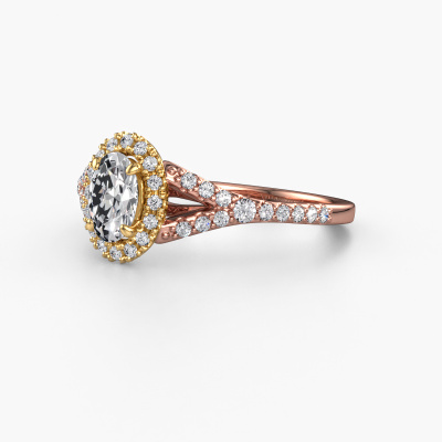 La bague de fiançailles mentionnée ci-dessus a été nommée Kimber OVL. Ce type de bague de fiançailles est appelé une bague de fiançailles solitaire pavé car elle ne comporte qu’une seule pierre centrale et les tiges de la bague de fiançailles sont également pleins. La bague de fiançailles est faite dans une combinaison d'or 14 Carat et d’or jaune et a un diamant ovale d’une de 0.60 crt, et des diamants synthétiques sont sertis sur les épaules de l’anneau. Chaque bijou est faite avec passion et amour par l'un de nos maîtres orfèvres. Cette bague de fiançailles solitaire pavé forgée en or rose exclusives a un beau diamants ovale comme pierre centrale, avec plus de diamants sertis dans la bague pour accentuer encore plus la présence de la pierre centrale. Le sertissage à griffes autour du diamant étant ouvert, le diamant capte la lumière de tous les côtés et brille de manière optimale. Ci-dessus, vous pouvez voir comment notre orfèvre travaille la bague de fiançailles avec une extrême précision dans les moindres détails, de telle sorte que le diamant élevé puisse attirer tous les regards. Quelle belle bague de fiançailles à offrir lors de votre demande en mariage à l'amour de votre vie, à votre centre rayonnant ! En combinant les dernières techniques modernes, associées à une fabrication ancienne, nous sommes en mesure de fabriquer nos bagues de fiançailles dans notre propre studio. Chaque bijou est fabriqué sur commande. Ceci est avantageux car nous sommes en mesure de vous proposer un prix que vous ne trouverez nulle part ailleurs.Notre équipe ajoute quotidiennement de nouveaux modèles à notre collection en ligne. Nos designers et orfèvres travaillent ensemble pour créer le meilleur design. Nous nous efforçons d'offrir une collection diversifiée de bijoux. Peut-être avez-vous déjà en tête un bijou en particulier ? Un bijou que vous avez trouvé quelque part. Veuillez nous contacter pour une consultation gratuite. Nous vous ferons une offre, basée sur un rapport qualité / prix juste, qui vous déconcertera.Pour vous faciliter la tâche, vous pouvez facilement nous retourner tout bijou commandé dans les 30 jours suivant la livraison.